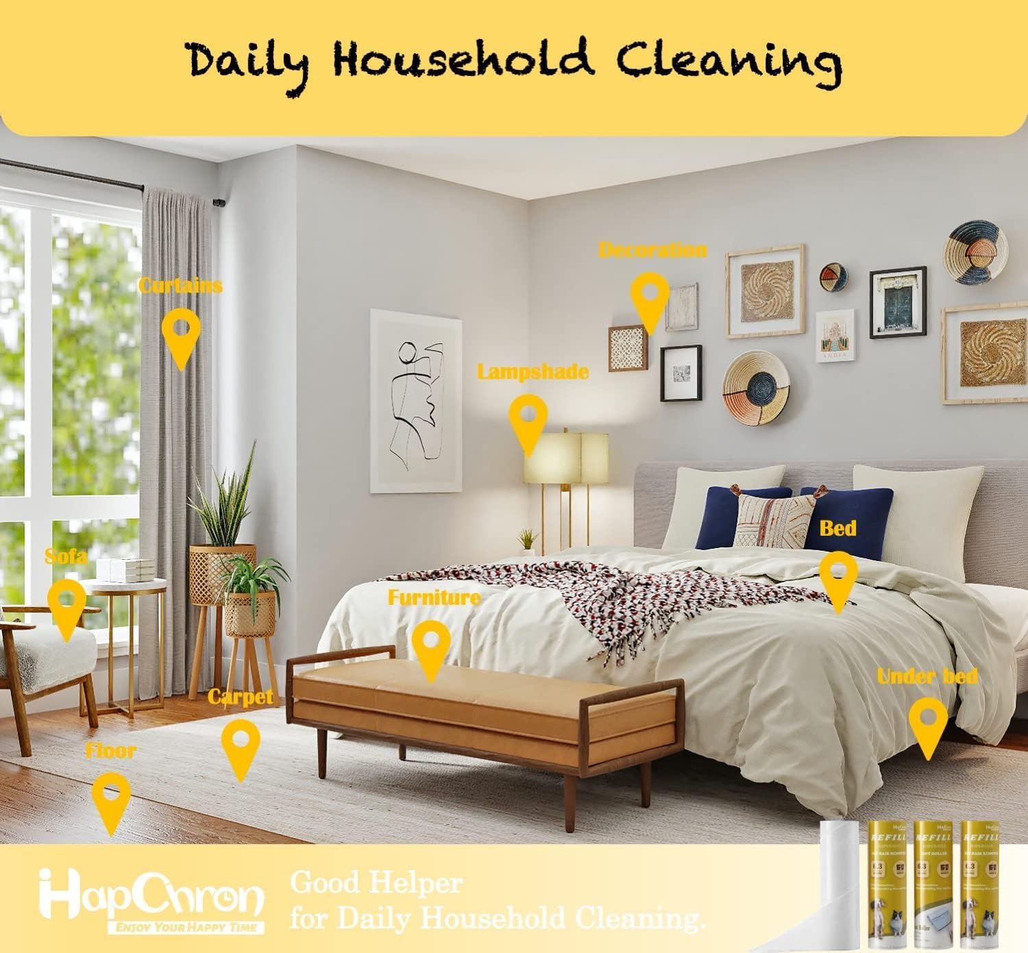 - š EVERYDAY CLEAN: Multifunctional intuitive design combined with ease of use makes this lint roller an ALL-IN-ONE household lint roller easily applicable to a variety of scenarios. In addition,the lint remover comes with a free hook, which can be hung in the room, living room, cloakroom, and is very convenient for storage. To extend the use of this heavy duty lint roller, use HapChron 6.3" Supersize Lint Roller Refills.