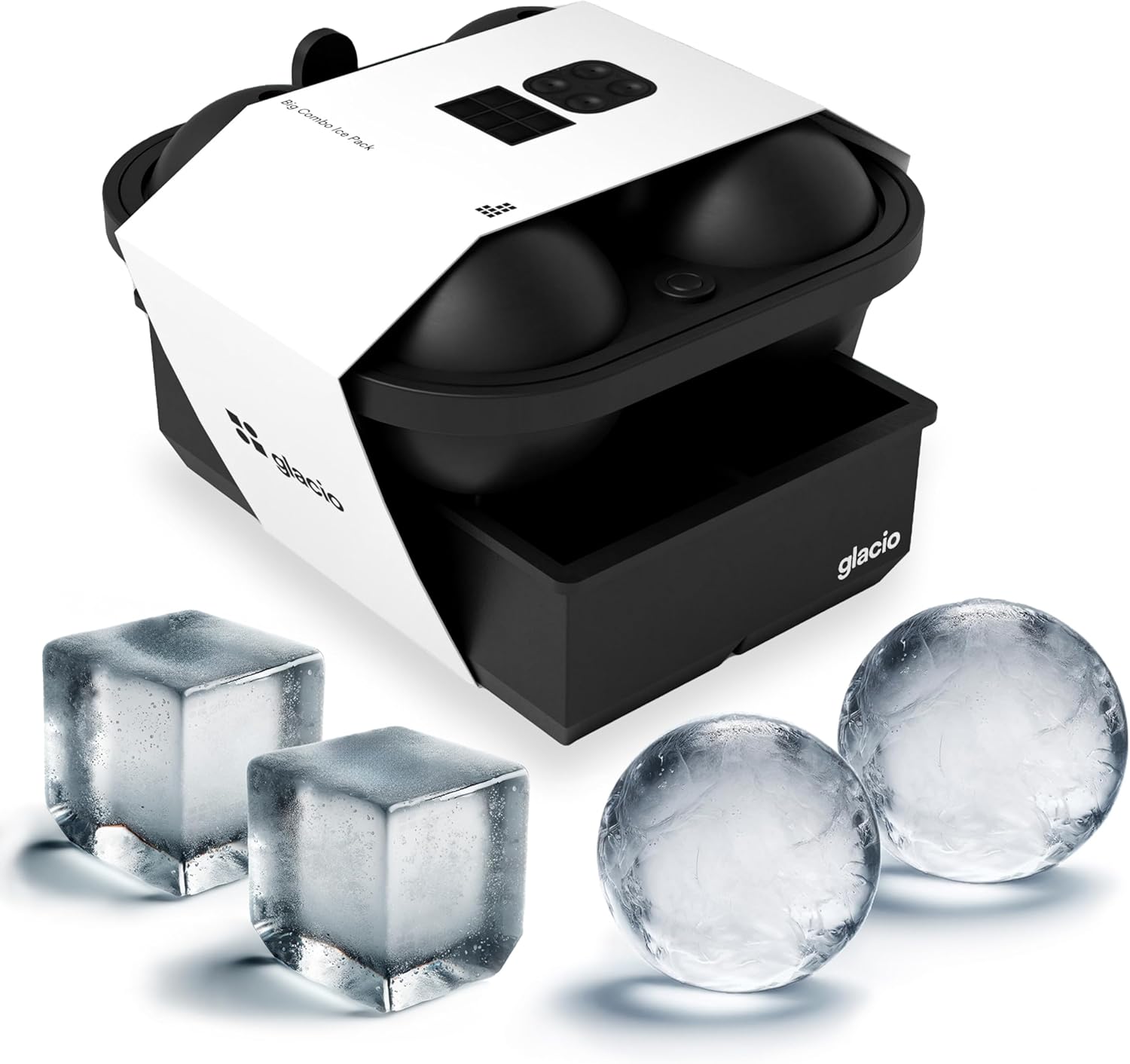 glacio Ball Ice Cube Tray and Big Ice Cube Molds for Whiskey, Slow-Melting, 100% Silicone, No-Plastic, Easy Release, Ideal for Gifting and Elevating Cocktails