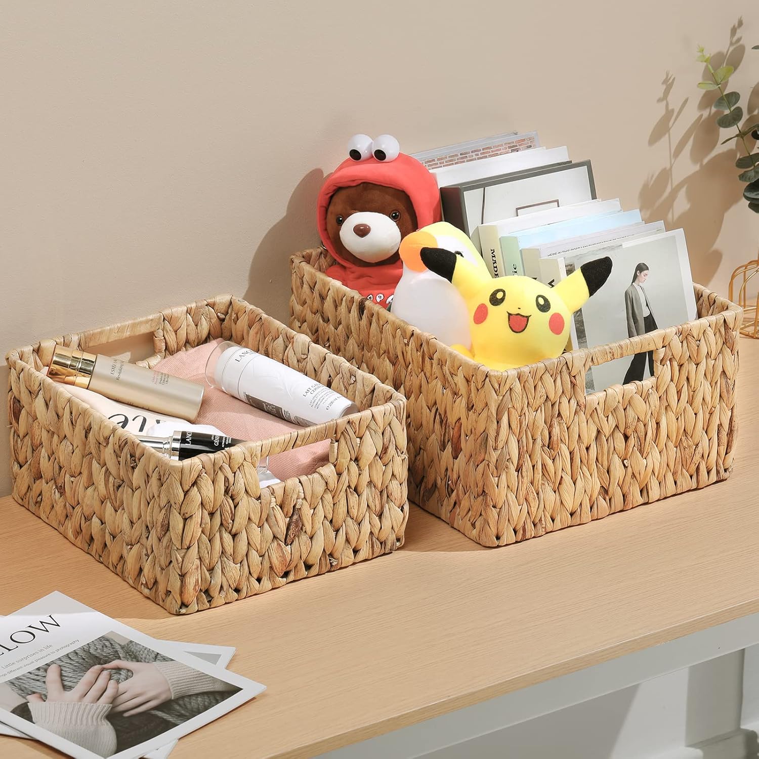 - Friendly to Furniture: these pantry baskets are made of soft water hyacinth material, and they don't scratch your shelves or other furniture.