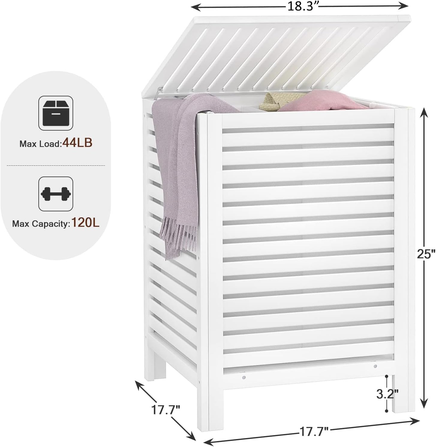 - 2 SECTIONS LAUNDRY HAMPER - Dimensions: 18.3β L x 18.3β D x 25.6β H, Volume: 120L, Large double laundry hamper easily moves up to 66 lbs of clothes, blankets, and towels. 2 Separate compartments help you to sort and organize your laundry. Dark and light colored clothes can be placed separately, so there is no need to do sorting when preparing the laundry.