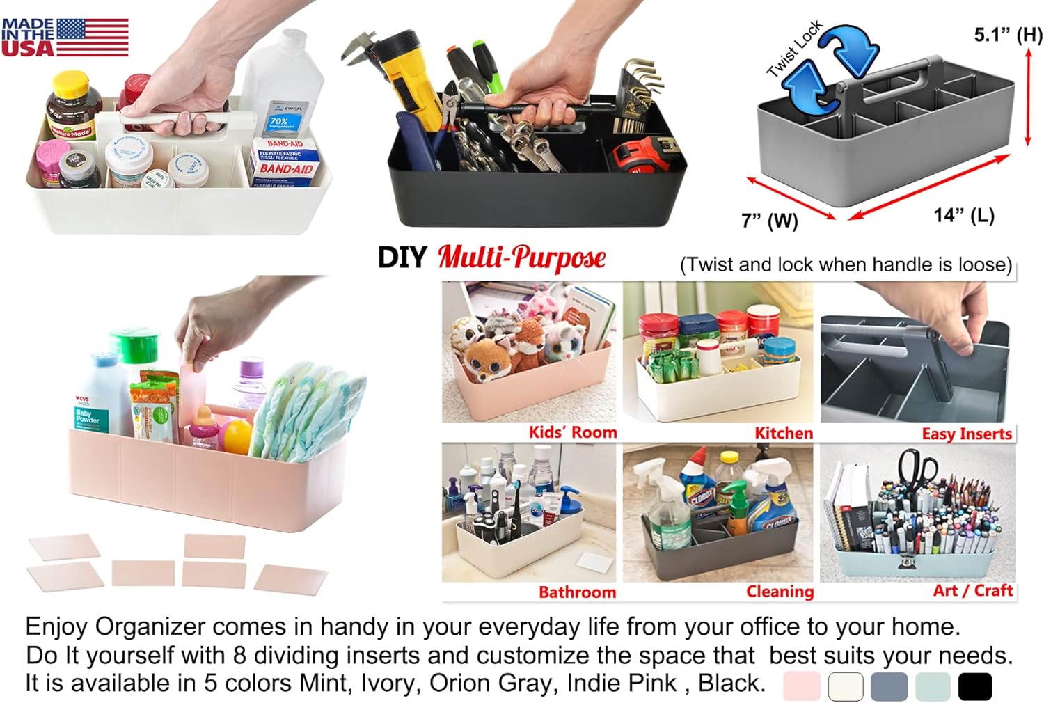 2 PACK Portable DIY 8 Dividers Durable Plastic Tote Tool & Supply Cleaning Caddy with Handle Made In USA (Lavender)