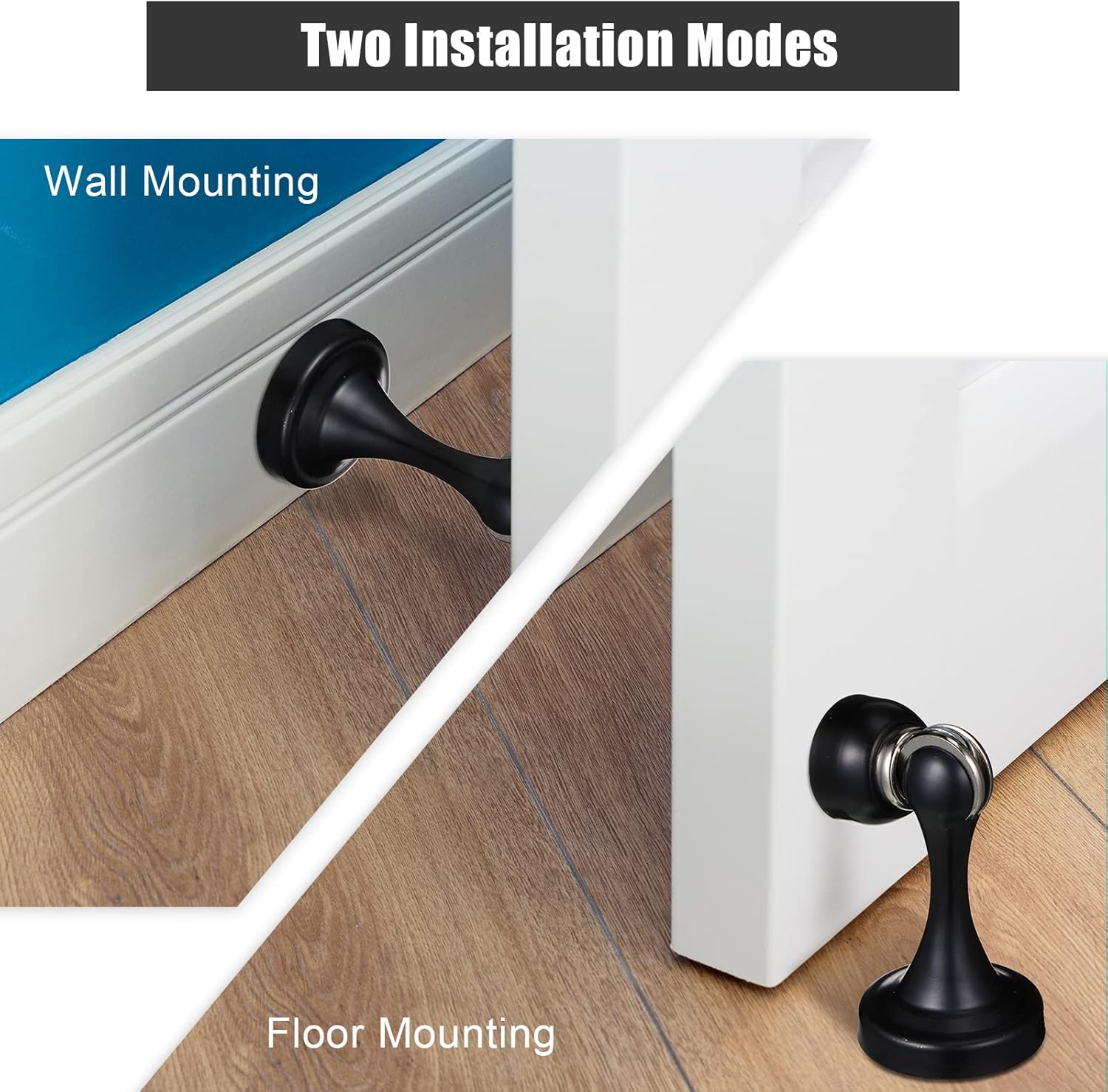 - Install with Screws:our metal magnetic door stopper can be installed vertically on the floor, or horizontally on the baseboard, or wall, which can meet your different needs; Just unscrew the two parts apart, mark the holes, drill the holes and attach the parts through screws to the doors
