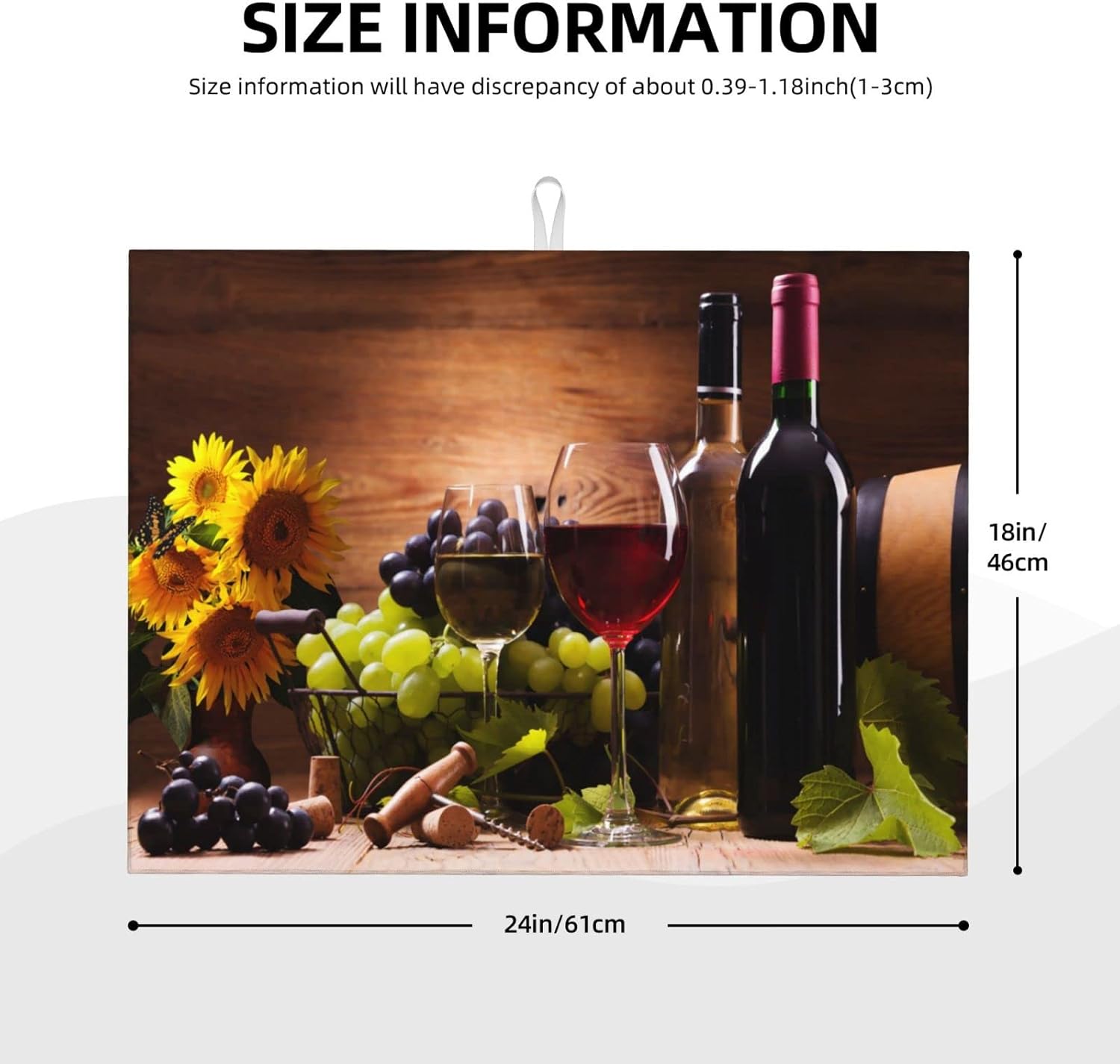- Perfect Size & Design - SIZE - 24 x 18 Inch/61 x 46 cm. This wine dish mat provides ample surface area for holding pots, pans, glasses, and utensils. The extra large size allows you to store all of your dishes without needing another dish mat or dishwasher.Reverses To A Solid Color, Absorbent, Non-Slip, Reversible, Dish Drying Mats Can Hold A Lot Of Tableware In Your Kitchen