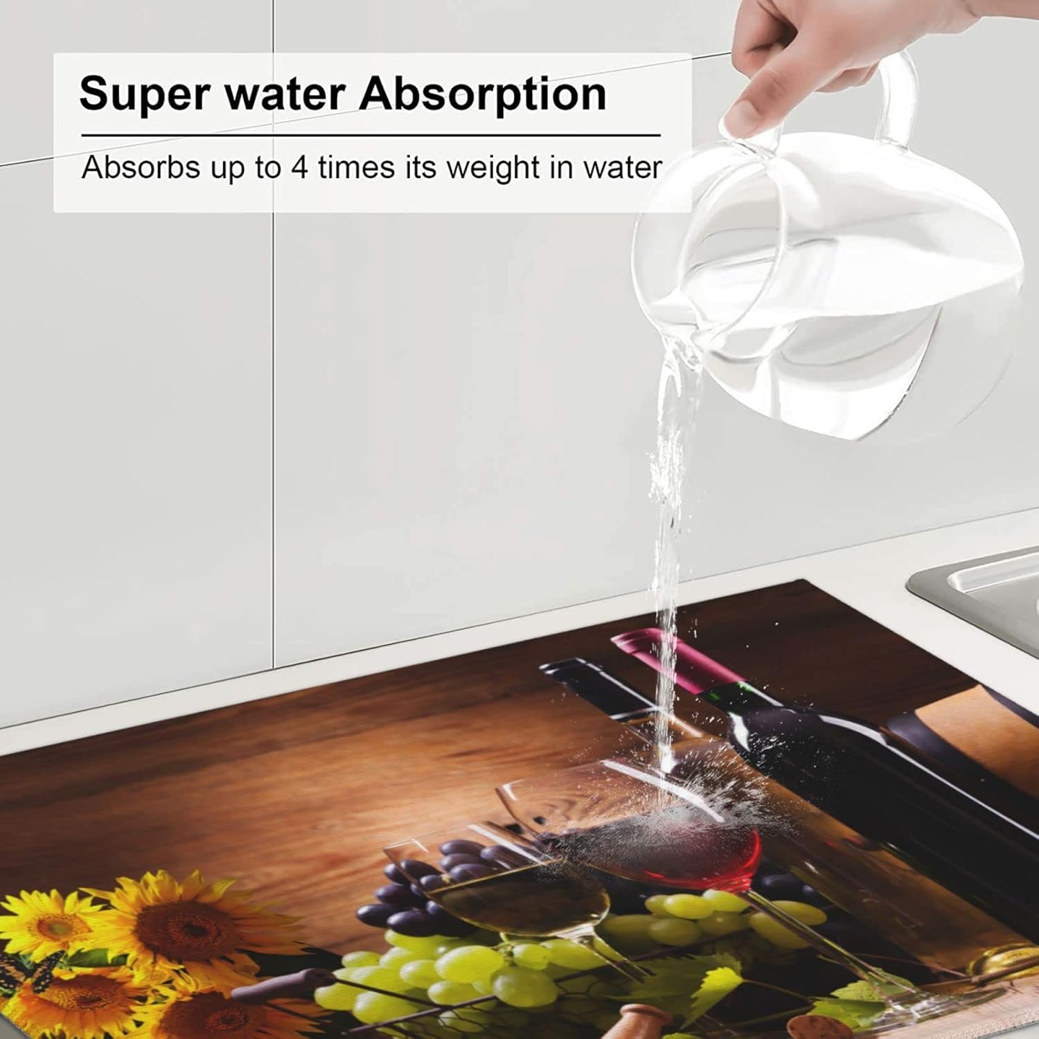 Red Wine Grape Vintage Wooden sunflower Microfiber Absorbent Reversible Dish Drying Mat For Kitchen Counter Xl Large Pad 18 X 24 Inch