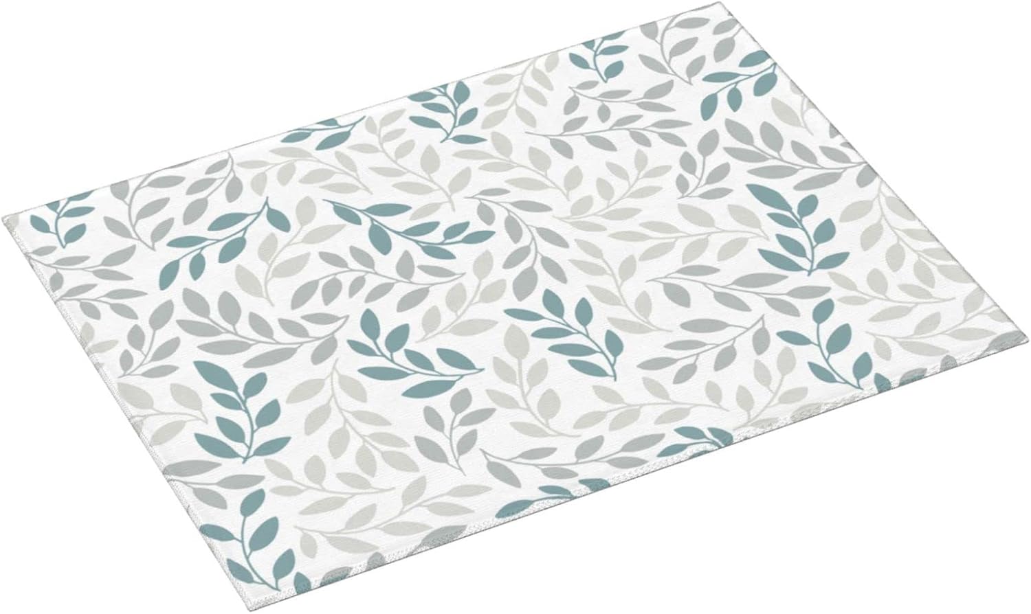 Grey And Blue Leaves Branches Microfiber Absorbent Reversible Dish Drying Mat For Kitchen Counter Xl Large Pad 18 X 24 Inch