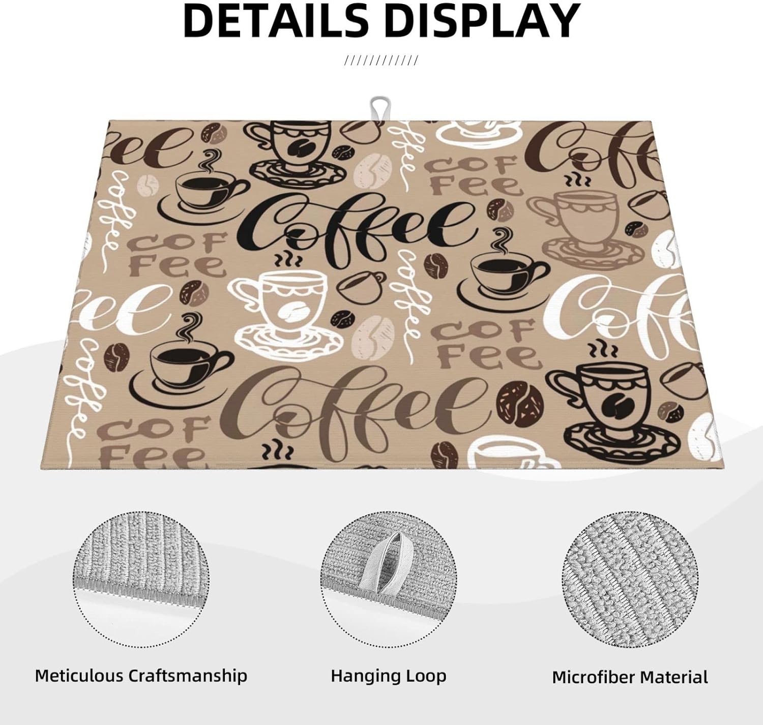 - Ultra Absorbency - Our coffee bar mat is made of high absorbent microfiber and the middle is made of composite sponge durable, Absorbs 4x Its Weight In Water, Keep Your Counter Dry, The coffee themed kitchen mats for kitchen counter countertop, coffee bar, dish drain rack.