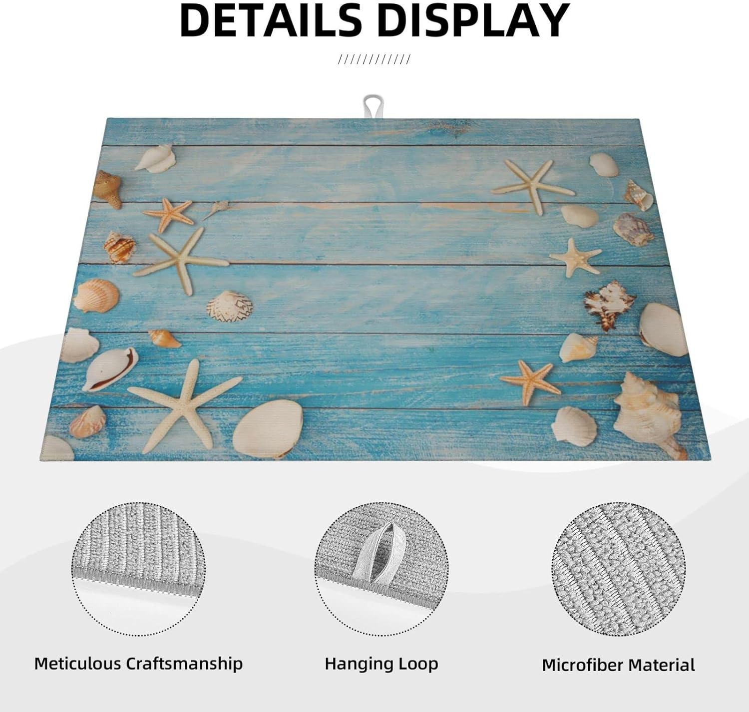 Seashells Starfish On Blue Wood Absorbent Microfiber Xl Dish Drying Mat For Kitchen Countertop Extra Large Reversible Drainer Rack Pad 18 X 24 Inch