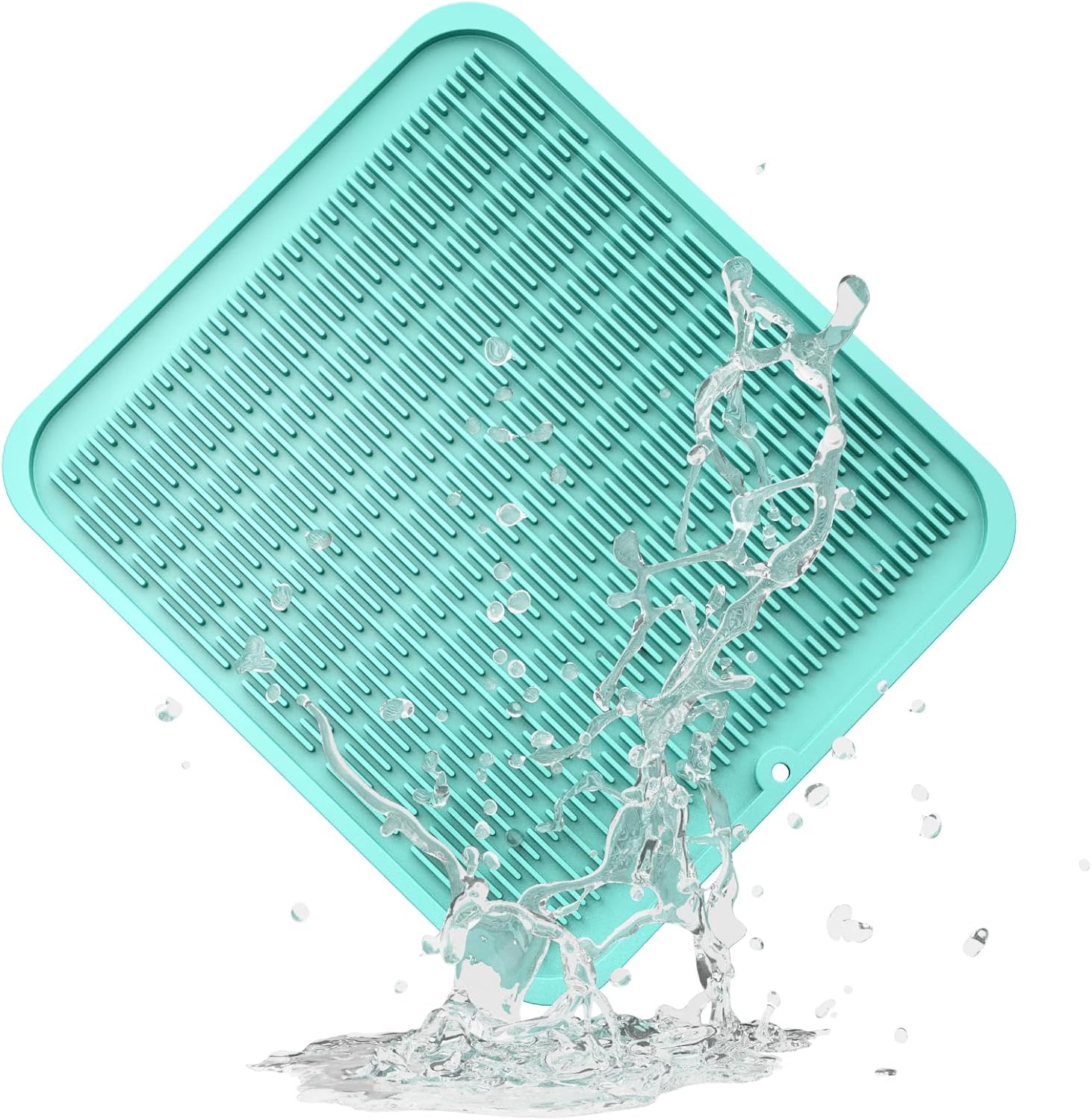 ZLR Silicone Dish Drying Mat for Kitchen Counter, Eco-Friendly Fast Dry Dish Mat, Easy Clean Multi Usage Drying Matt, Heat Resistant Trivet, 16" x 18" XL, Mint Green