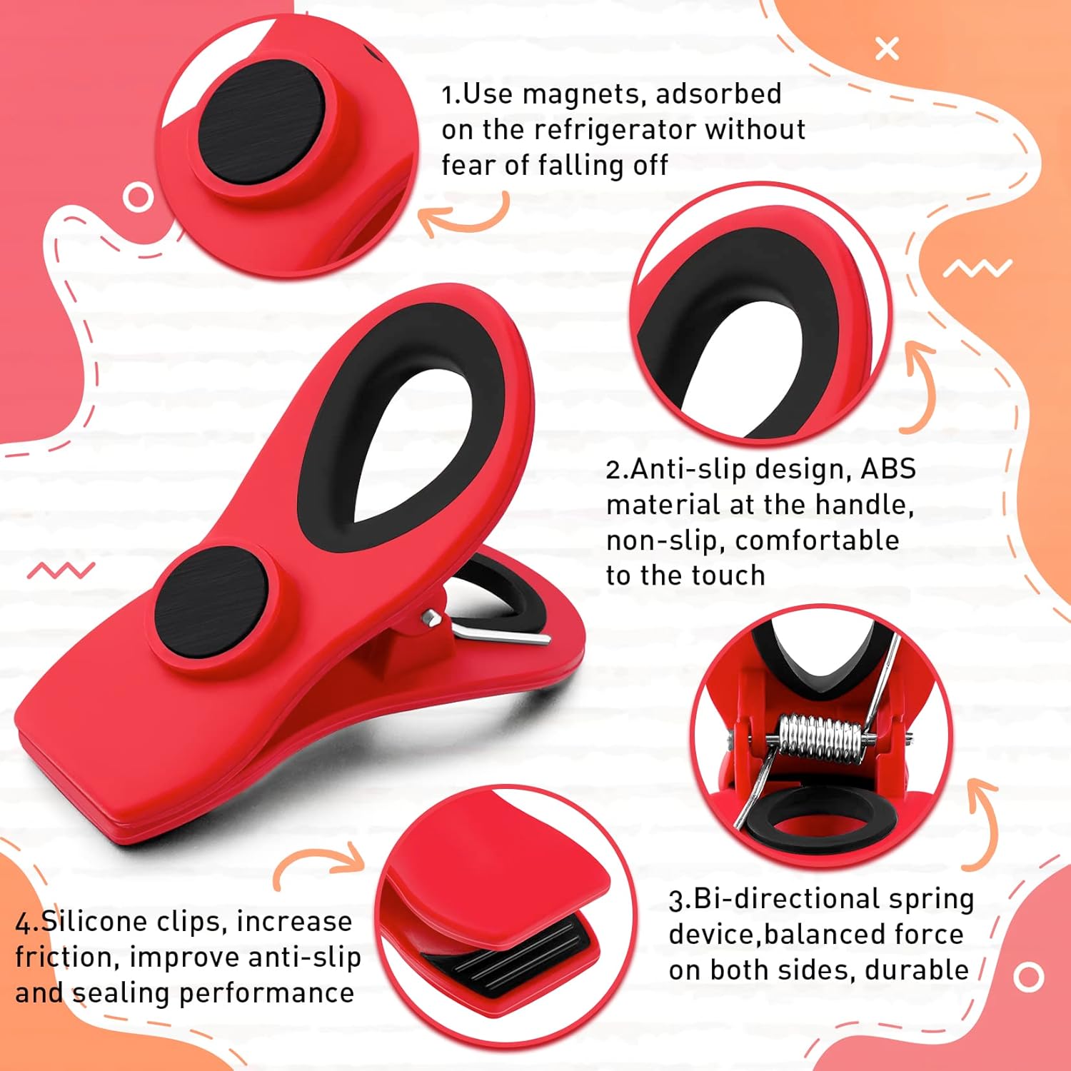 - Magnetic design: these chip bag clips are designed with a magnet on the back, which allow you to stick it on refrigerator, blackboard, glass and other surfaces, easily display your photo, daily schedule, artwork, memo notes and other small items, not easy to slip or fall off