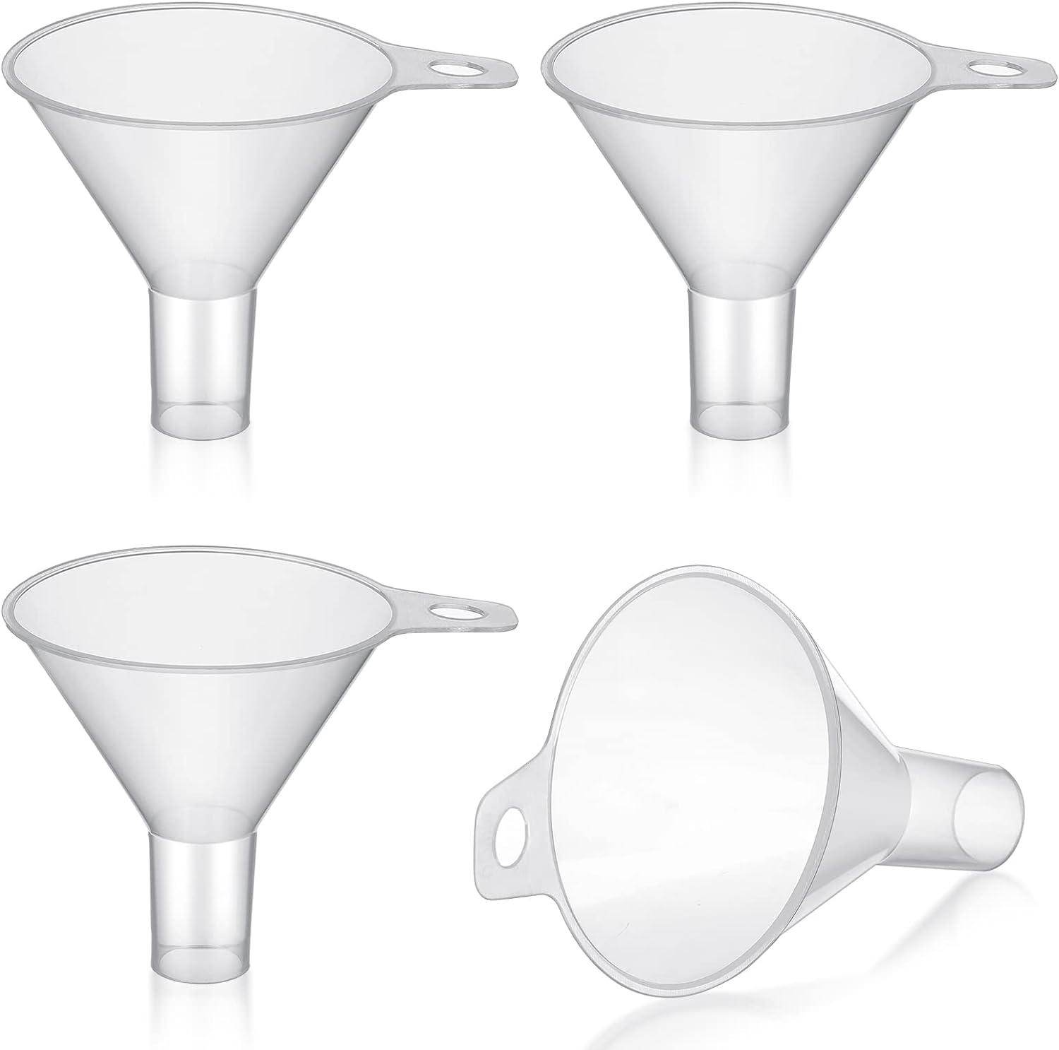 4 Packs Small Plastic Funnel for Filling Small Bottles 2.56 Inch Clear Wide Mouth Plastic Funnel for Filling Water Powder Essential Oils Perfumes Kitchen Bath Garage Use