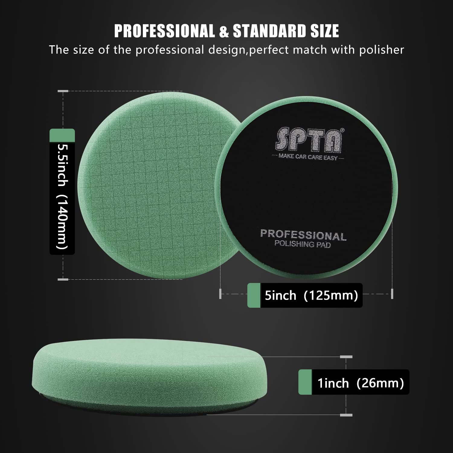 Green Heavy Cut Pad, Buffing Polishing Pads, SPTA 1Pc 5.5 Inch Face for 5 Inch 125mm Backing Plate Compound Buffing Sponge Pads for Car Buffer Polisher Compounding, Polishing and Waxing -FPTSS5G