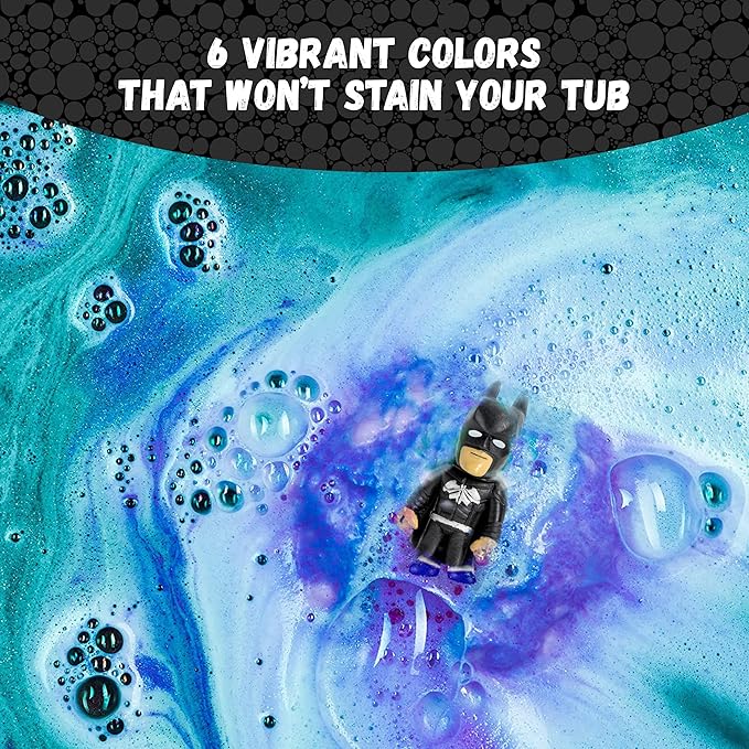- [Superhero Bath Bombs for Boys and Girls] Witness the magic of our effervescent bath bombs, unveiling superhero toy surprises. Immerse in a bath full of colors and bubbles, lasting 5 to 8 minutes—longer lasting than off-brand bath bombs.