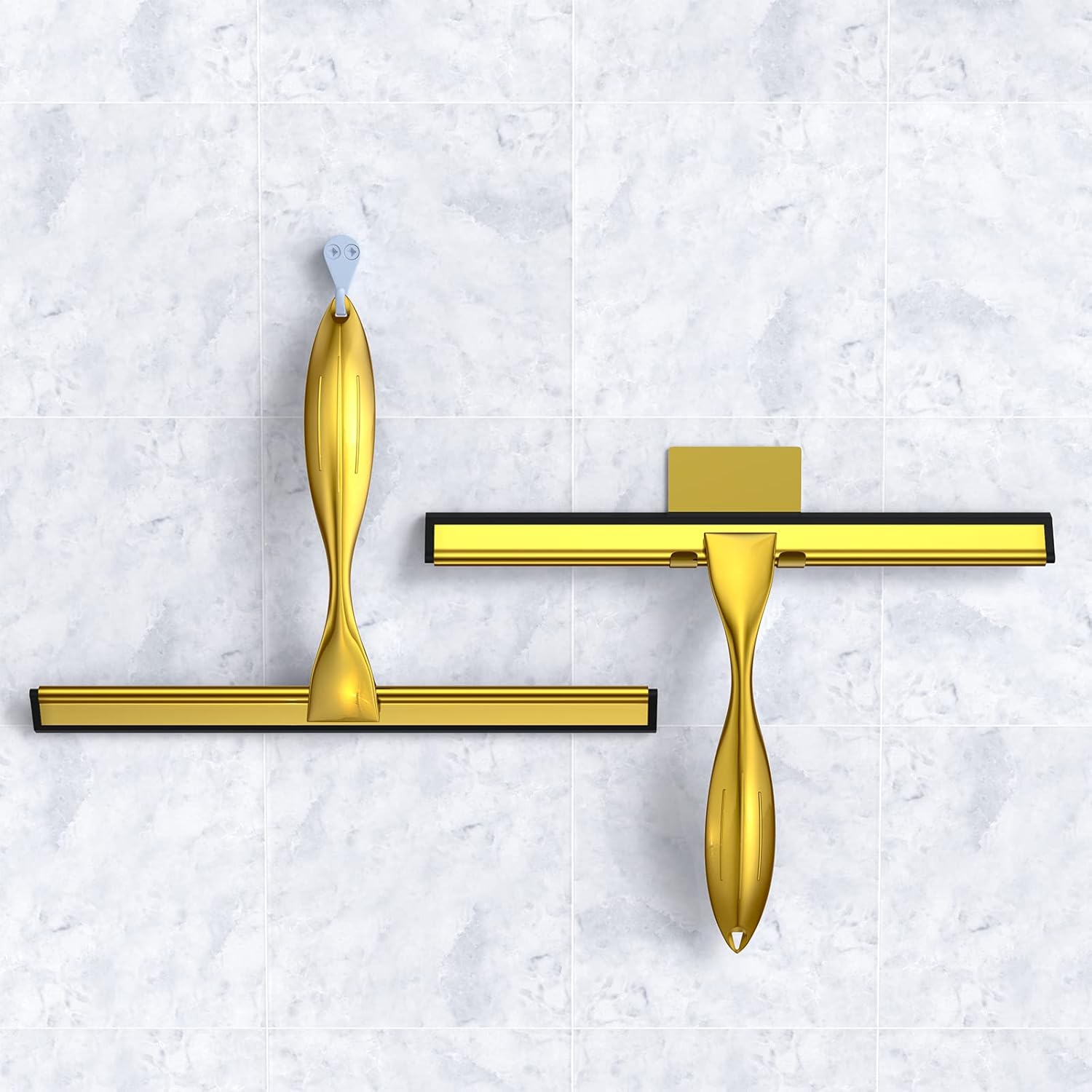 - ERGONOMIC NON-SLIP HANDLE DESIGN: Considering the special damp environment in the bathroom and the handle getting slippery when your hand is wet, we made an upgrade constructive design on the original squeegee to built-in a Contoured Rubber Non-Slip Grip which will fit the fingers perfectly when grasp. Combined with the curved handle which is more ergonomic for grasp compared to the straight handle can effectively minimize the effort you use when wipe
