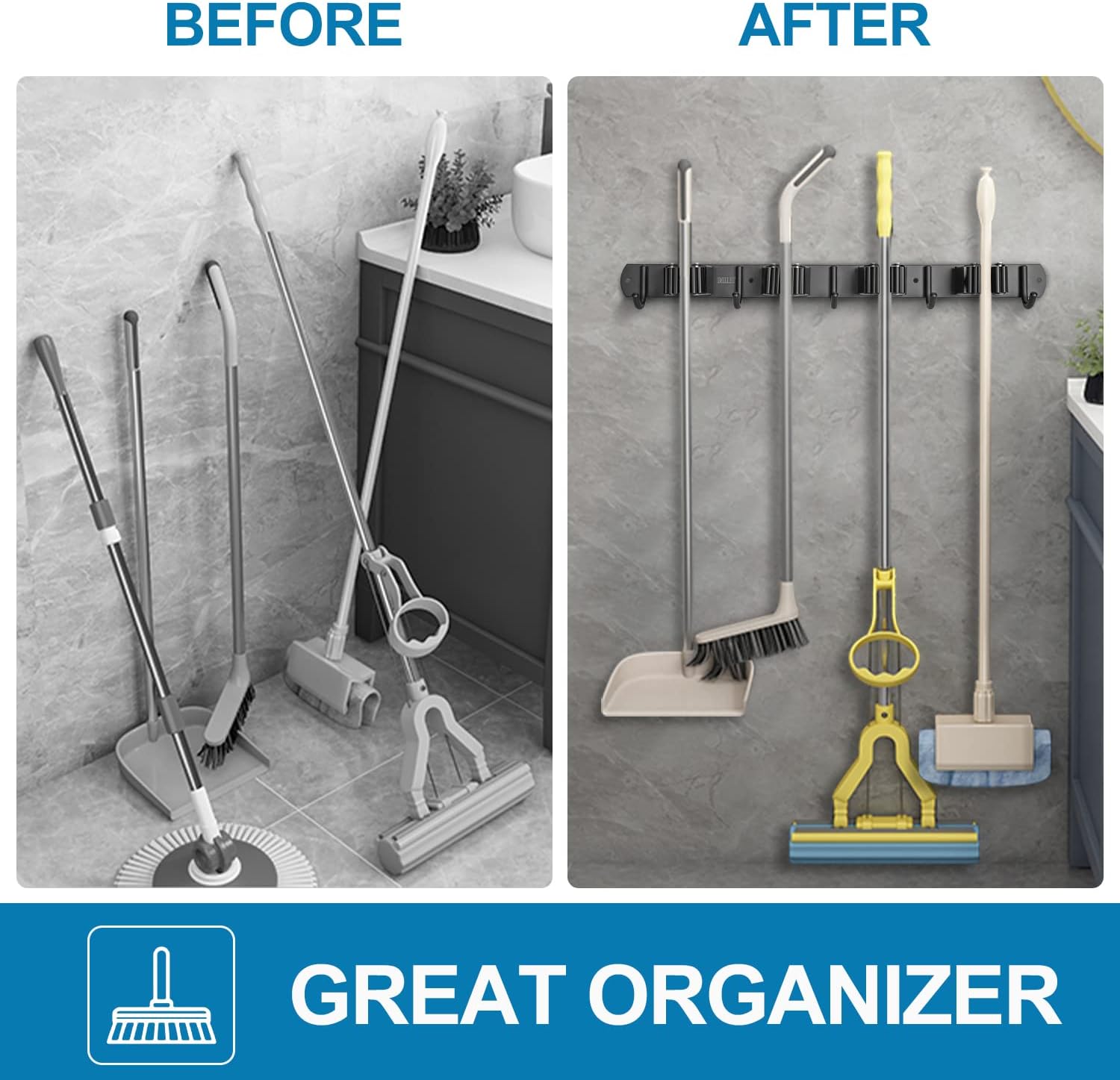 - 🧹 HEAVY DUTY: Mop holder grip everything tightly and securely without slip. It can hold up to about 9 tools in total. Keep your place cleaned up and keep things organized.