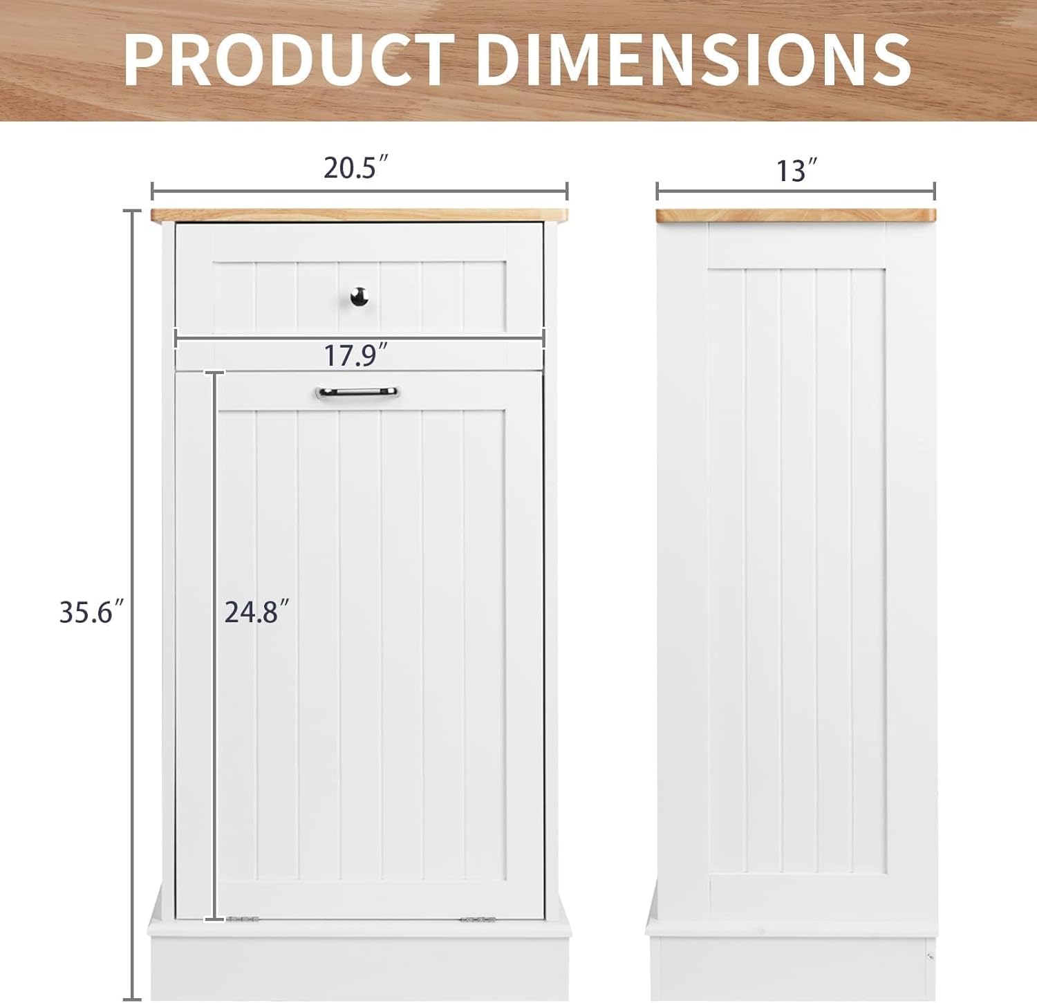 - 🏡【Durable and Stable】 35.6 "H x 20.5 "L x 13 "W cabinet support is stable enough to hold up to a 35 lb (ca. 16 kg). Our Trash can, a perfect match for a 10-gallon trash can.(trash can not included) Rubberwood top surface provides extra cutting space, and can easily withstand even a microwave and coffee maker