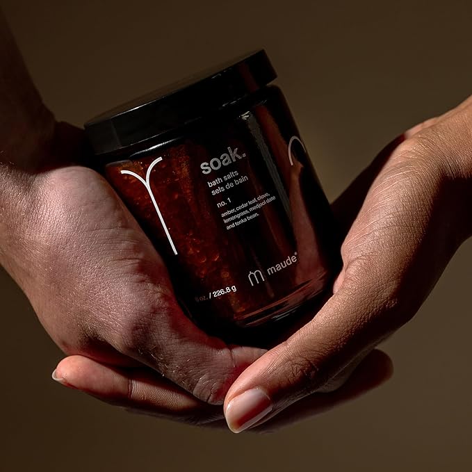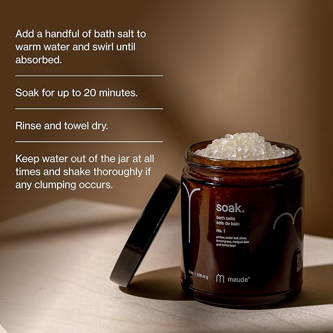 Maude Soak No. 1 - Nourishing Mineral Bath Salts - Hand-Harvested Dead Sea Salt with Magnesium & Potassium Chloride - Soften & Rejuvenate Skin - Notes of Amber, Cedar Leaf & Clove (8 oz)