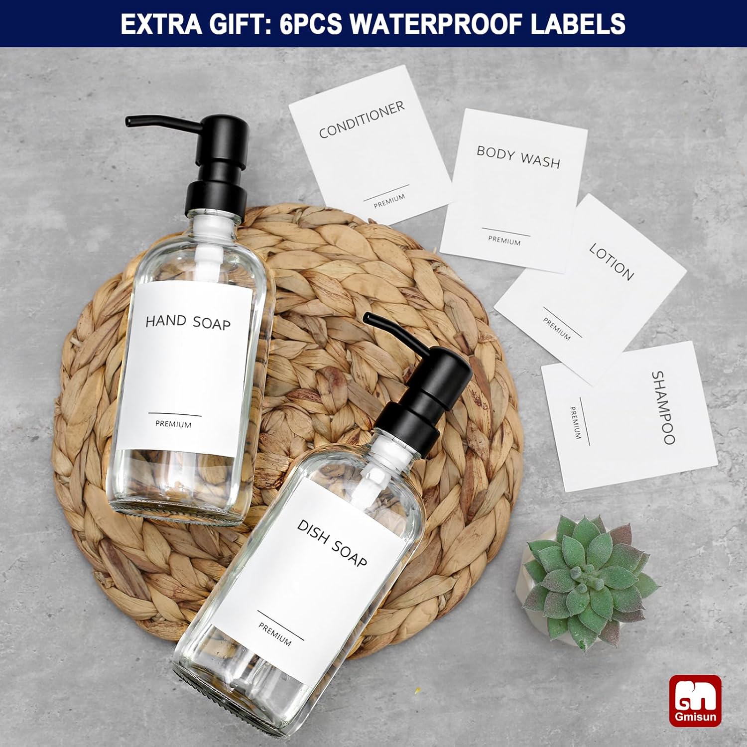 - 【6PCS WATERPROOF ELEGANT LABELS】 GMISUN provides 6pcs elegant waterproof labels for each 2-pack set of soap dispenser for kitchen sink. The highly effective waterproof feature makes them stay tightly attached to the kitchen soap dispenser without any wrinkling, warping, or breaking from moisture. Making your kitchen and bathroom tidy and clean and giving the kitchen soap dispenser a more vintage vibe.