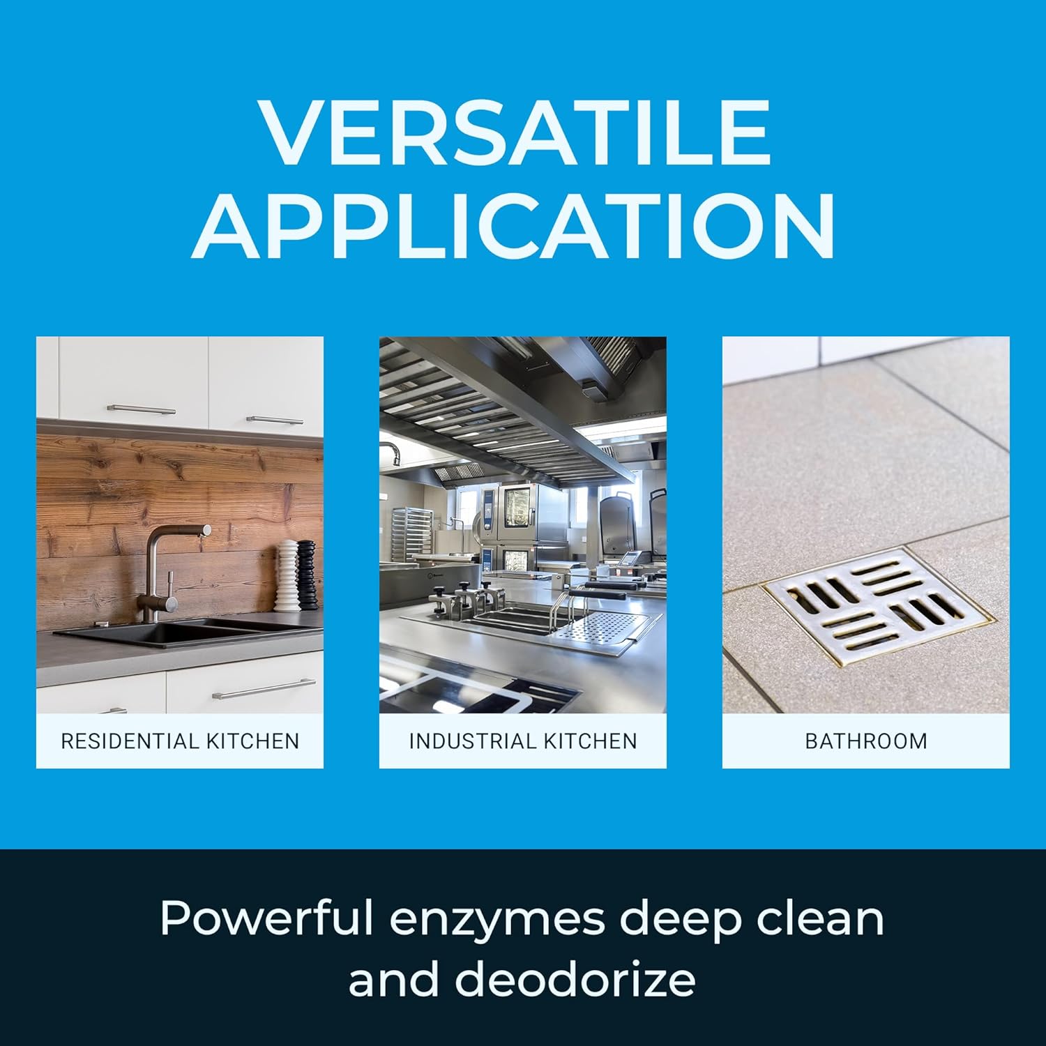 - Versatile Application: Our enzyme-based drain cleaner is ideal for use in restaurants, bars, kitchens, garbage disposals, and anywhere organic matter accumulates in drains; Fly-Zyme can be used as a preventative measure or to tackle existing infestations