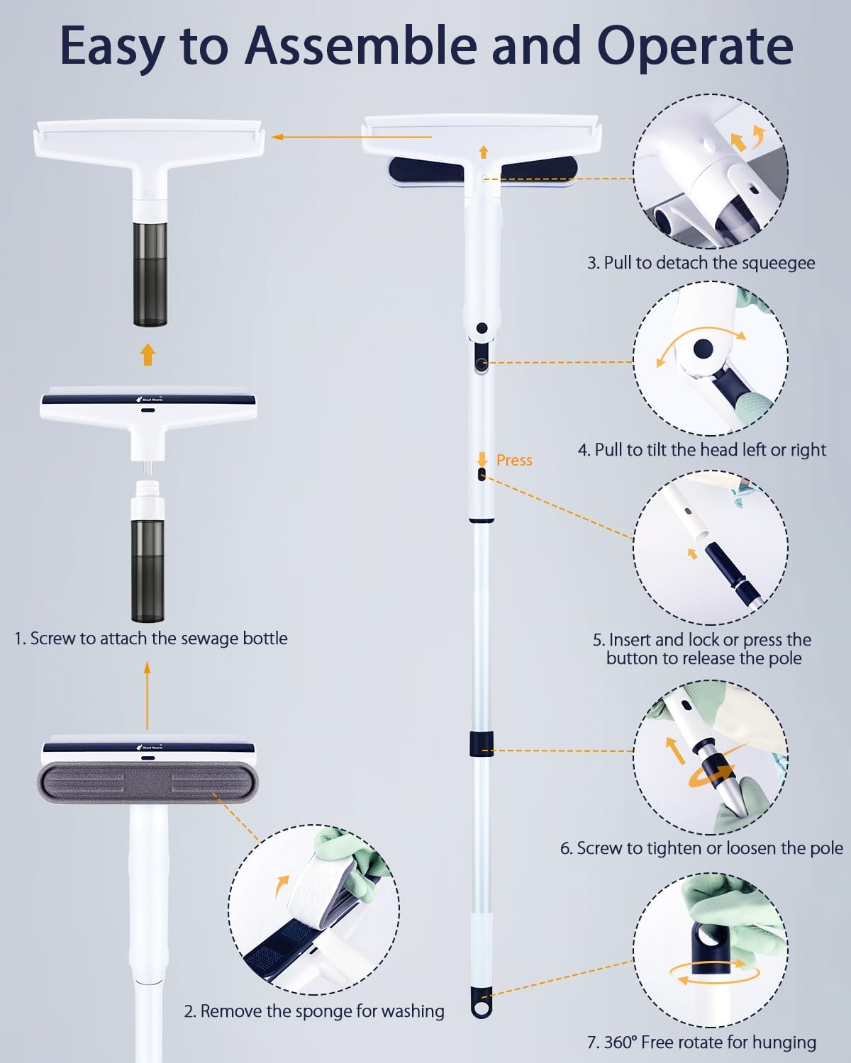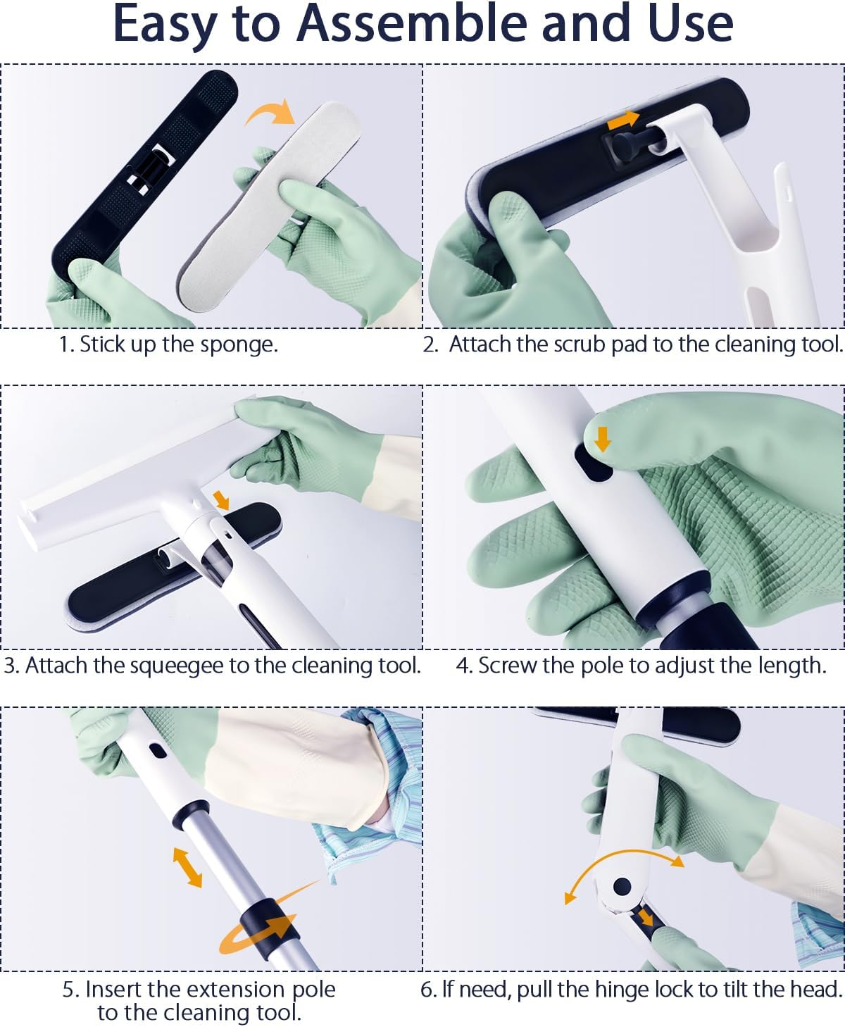 - 2-in-1 Window Cleaning Set: This professional window cleaning set is flexible used to clean glass doors, shower glass doors, bathroom windows and so on.
