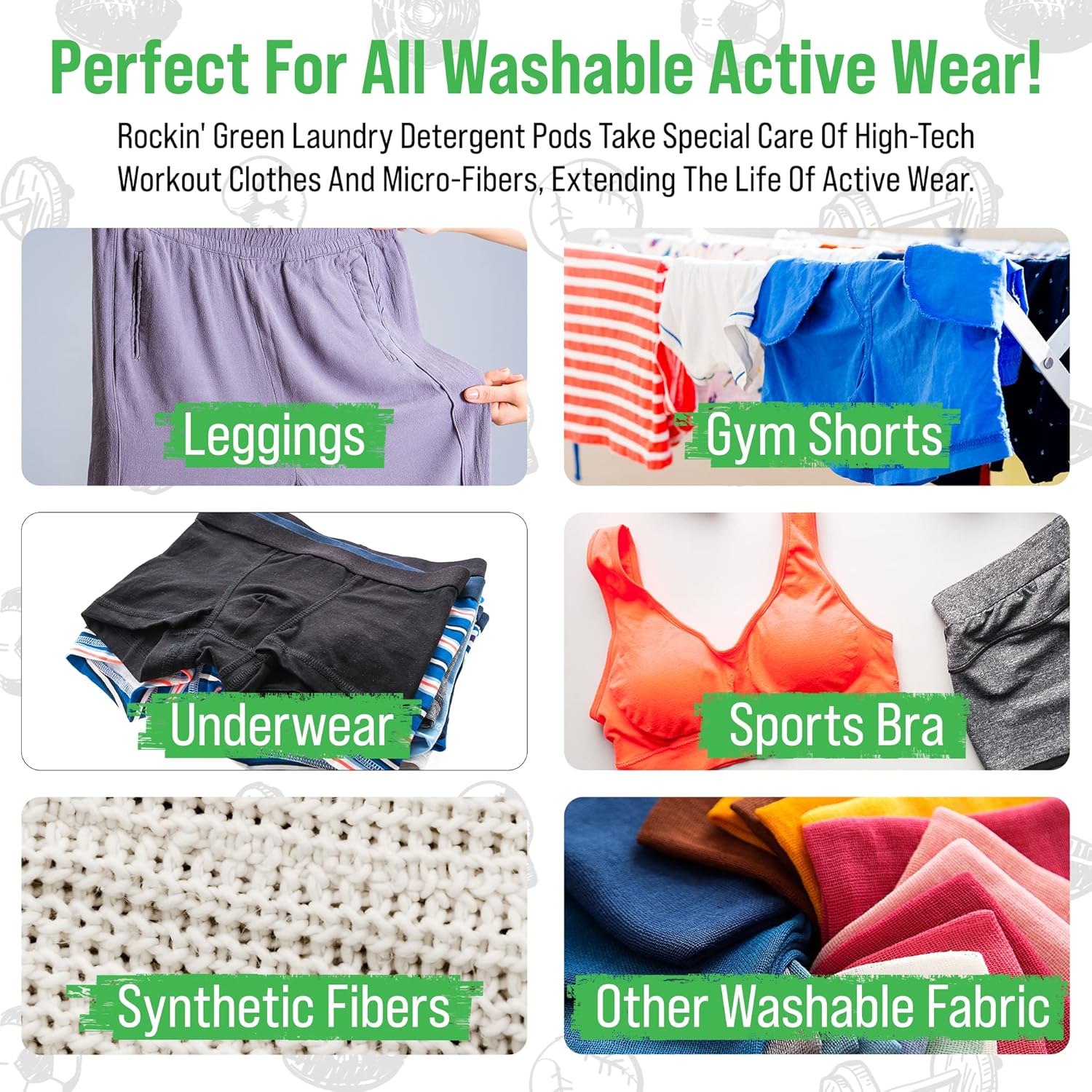 Rockin' Green Laundry Detergent Pods, Plant-based, All Natural, Vegan & Biodegradable Odor Fighter, Safe for Sensitive Skin (Unscented, Active Wear 40 Pods)
