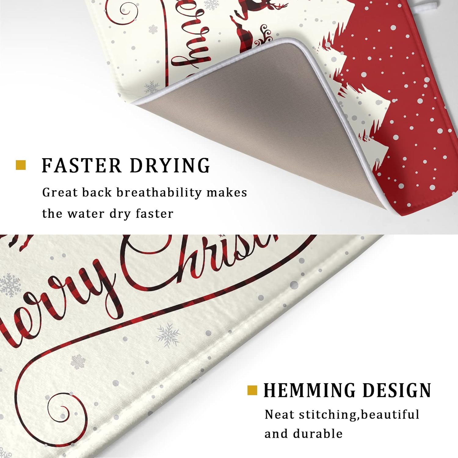 - Easy Storage: The dish drying mat with hanging loop, can be hung on the kitchen wall. This lightweight Christmas Deer kitchen dish drying mat, Soft and foldable, Microfiber is naturally, durable, and cleans up easily, and is effortless to clean. frees up space for your kitchen when in use, simply fold up and toss in a drawer or tuck it elsewhere when not in use.
