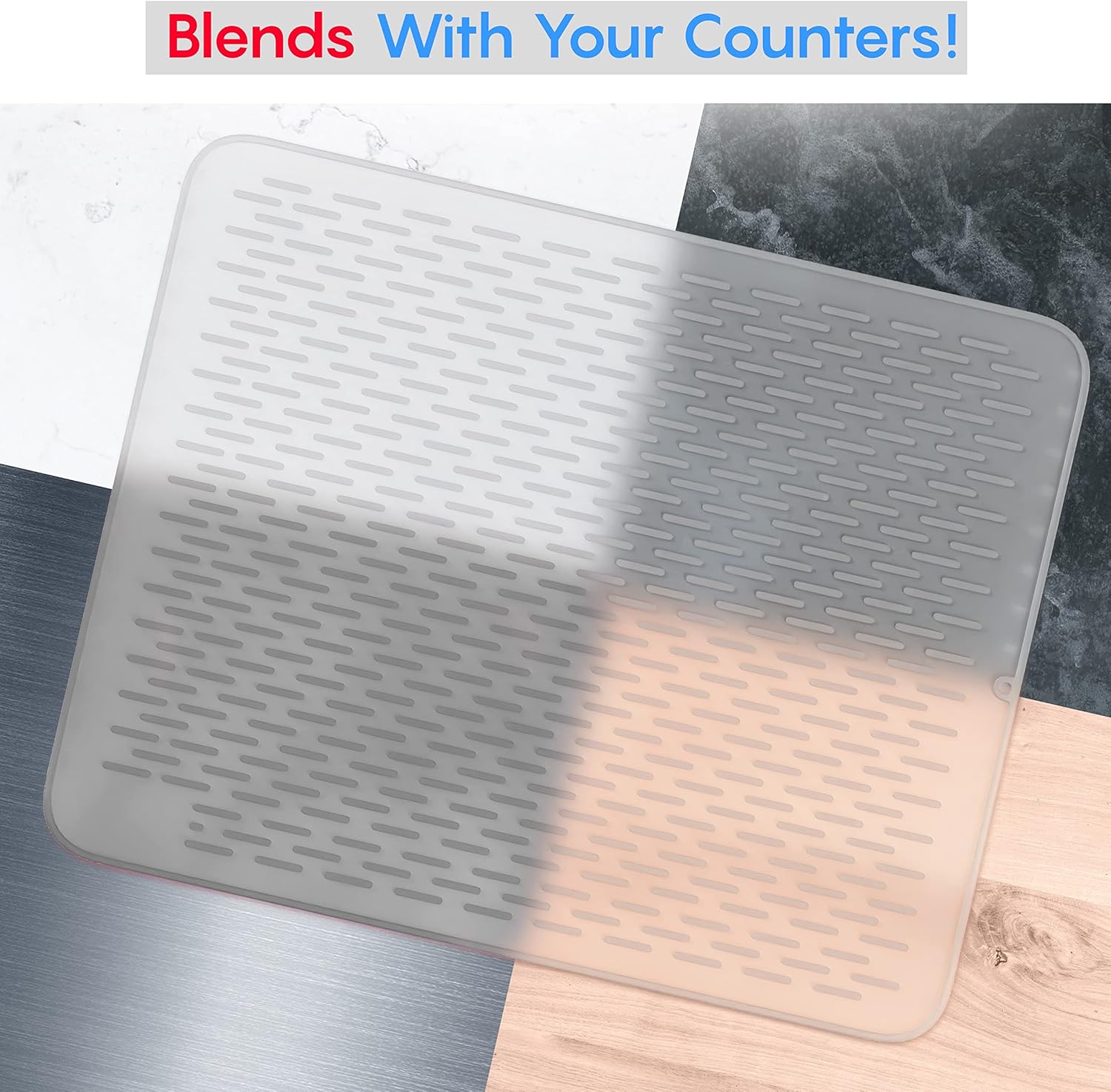 - Super-sized for greater protection and coverage. Extra large silicone mat for under dish drainer- protect your counters from water stains and damage.