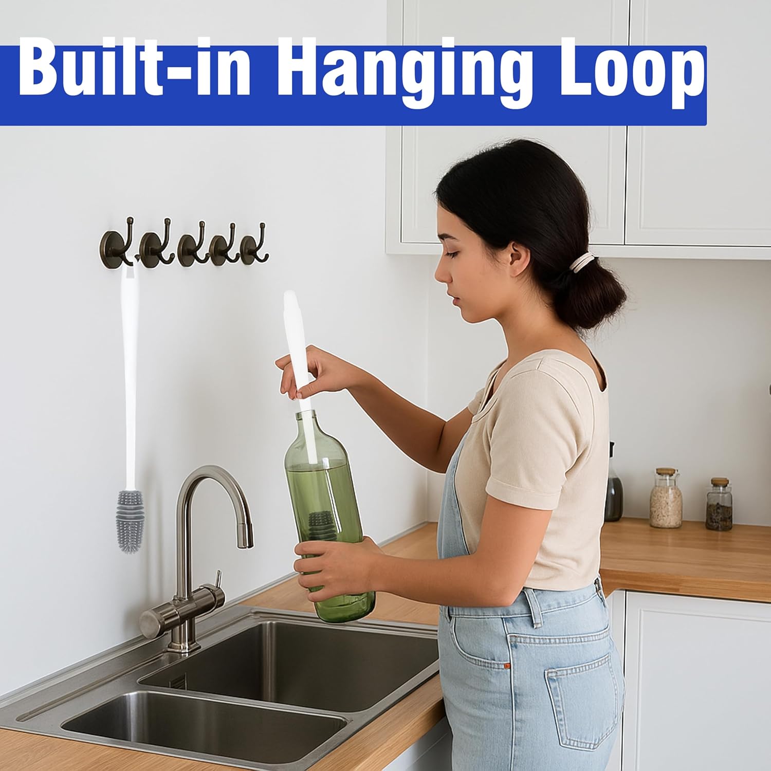 - COMFORTABLE LONG HANDLE - The handle is thin and long enough to reach the bottoms of bottles. The 10 inches lengthy ergonomic PP handle is perfect for various tall bottles. There is a hang loop in the end of handle for easy storage.