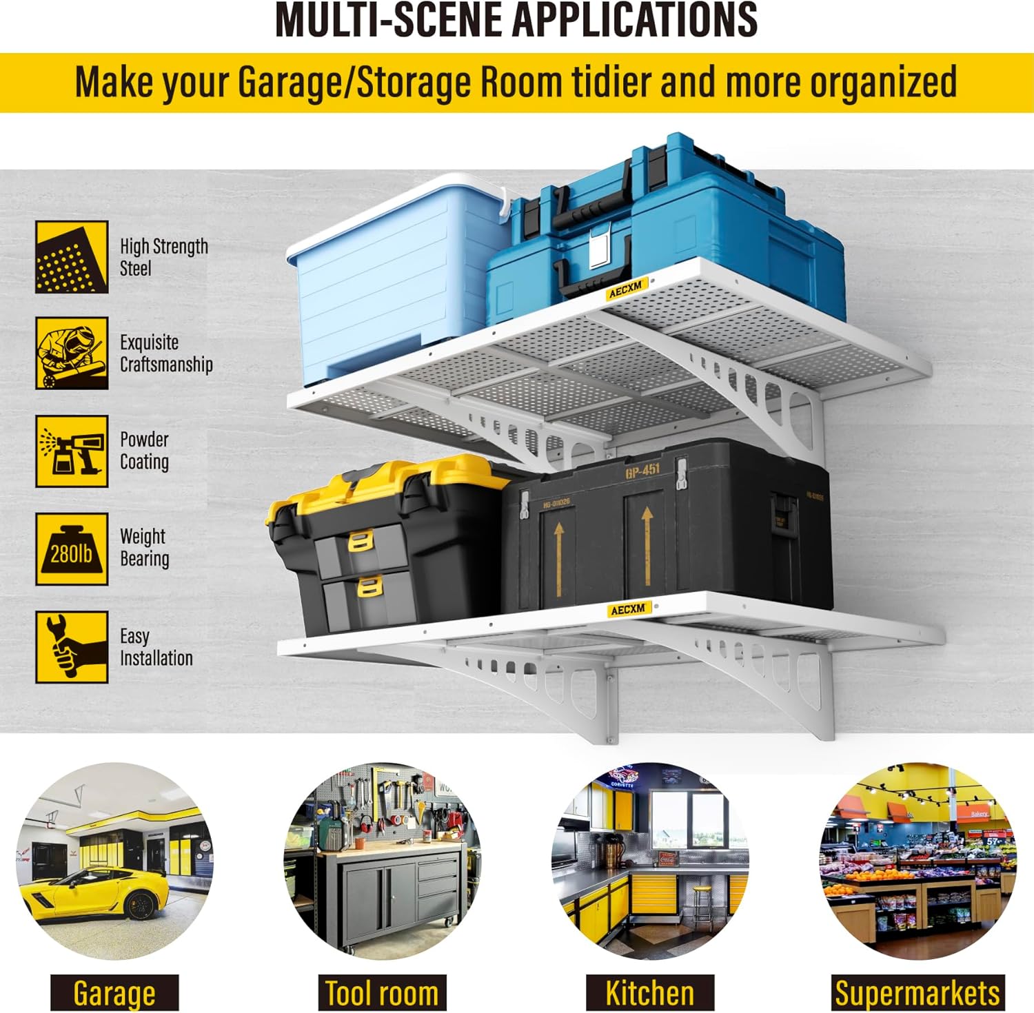 - Rigorous Load Testing: When properly installed on wood studs, the garage wall shelf total weight capacity reaches at least 560 lbs, with each individual panel supporting to 280lbs with no bending or warping