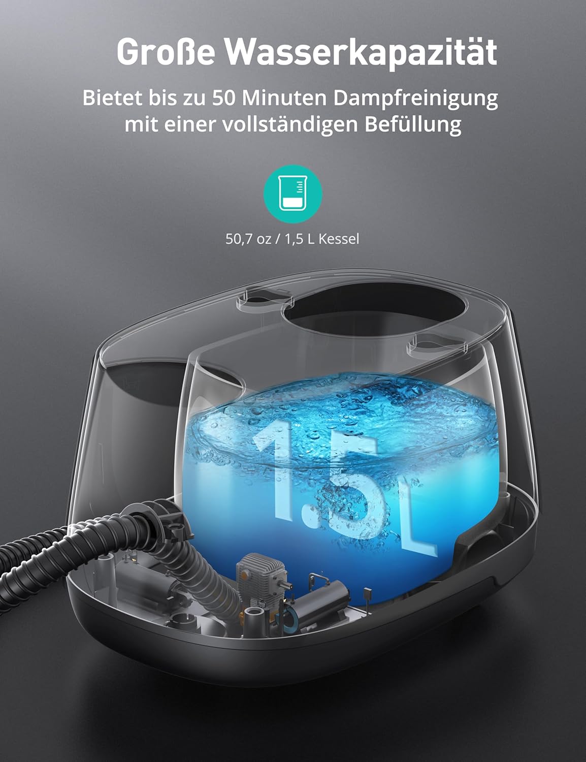 - 【Large Capacity】 Designed with a 50.7oz large capacity water tank, this steam cleaner for car with a 16ft long power cord provides up to 50 minutes steaming time, which is ideal for whole-home cleaning without interruption