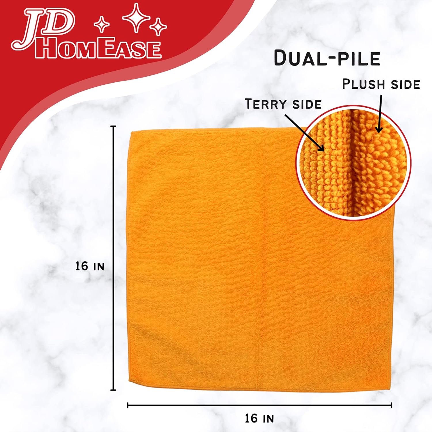 Microfiber Cleaning Cloths,48 Pack, 16"x16", All-Purpose, Softer, Highly Absorbent, Lint-Free, Reusable, Washable Pro Towels, Orange, for House, Kitchen, Bathroom, Car, Office