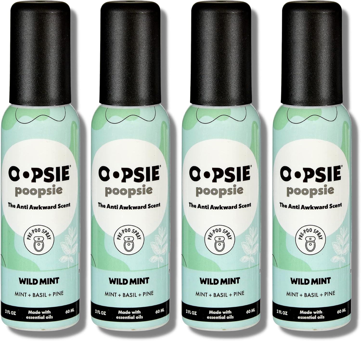 OOPSIE POOPSIE - Wild Mint - Before & After You Go Toilet Spray 2oz - Portable Odor Eliminator - 4 Pack