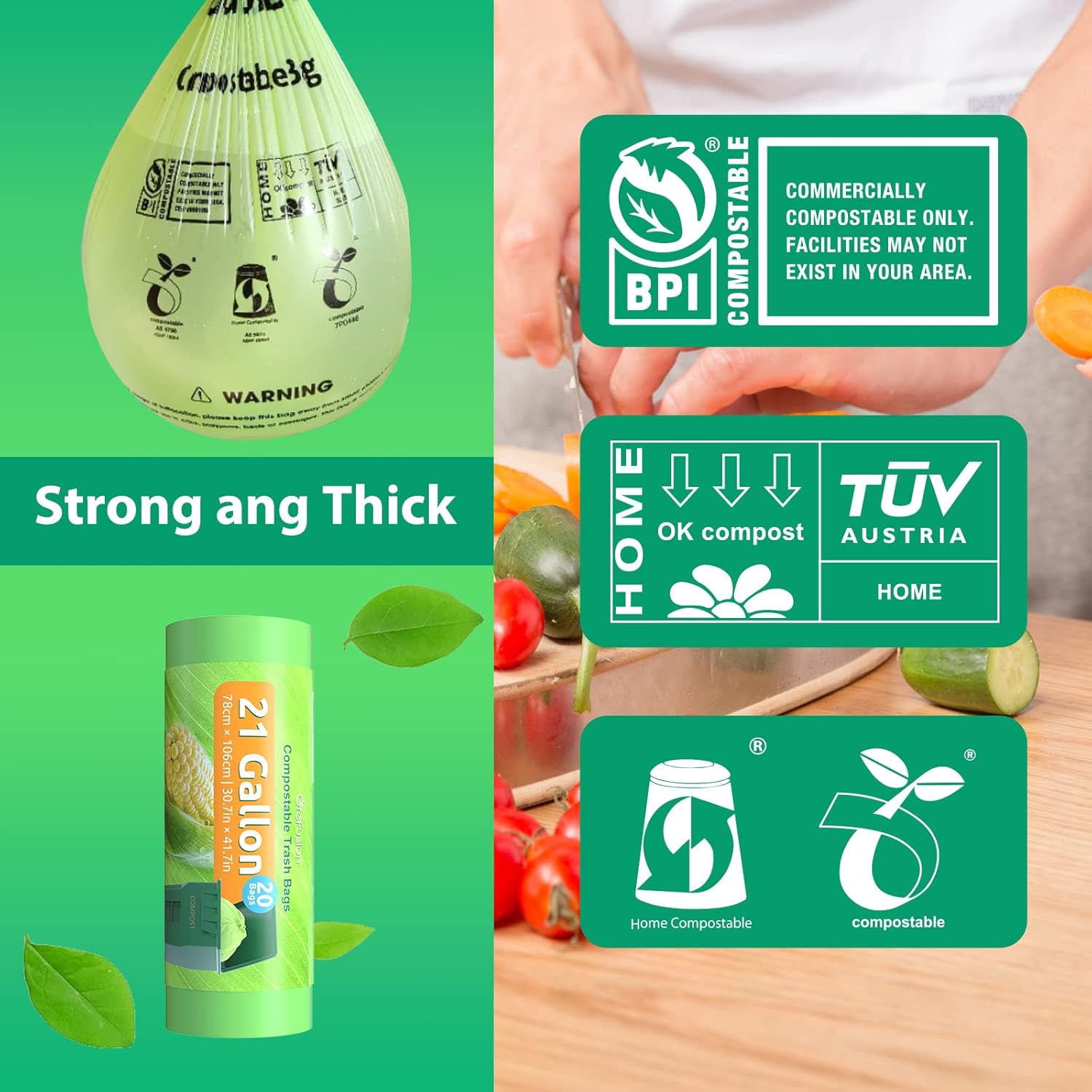 • 【FOR FOOD WASTE&YARD WASTE&ORGANIC WASTE RECOVERY】The GreFusion compostable trash bag size of 21 gallon are great for compost bin kitchen to collect food scraps,also can be used as kitchen trash bags, yard waste bags .The large compost bags are perfectly fit most large compost can design with star-sealed at the bottom. Kitchen compost bags are extra thick 1.28 Mils, durability leave no space to leak and not easy to tear