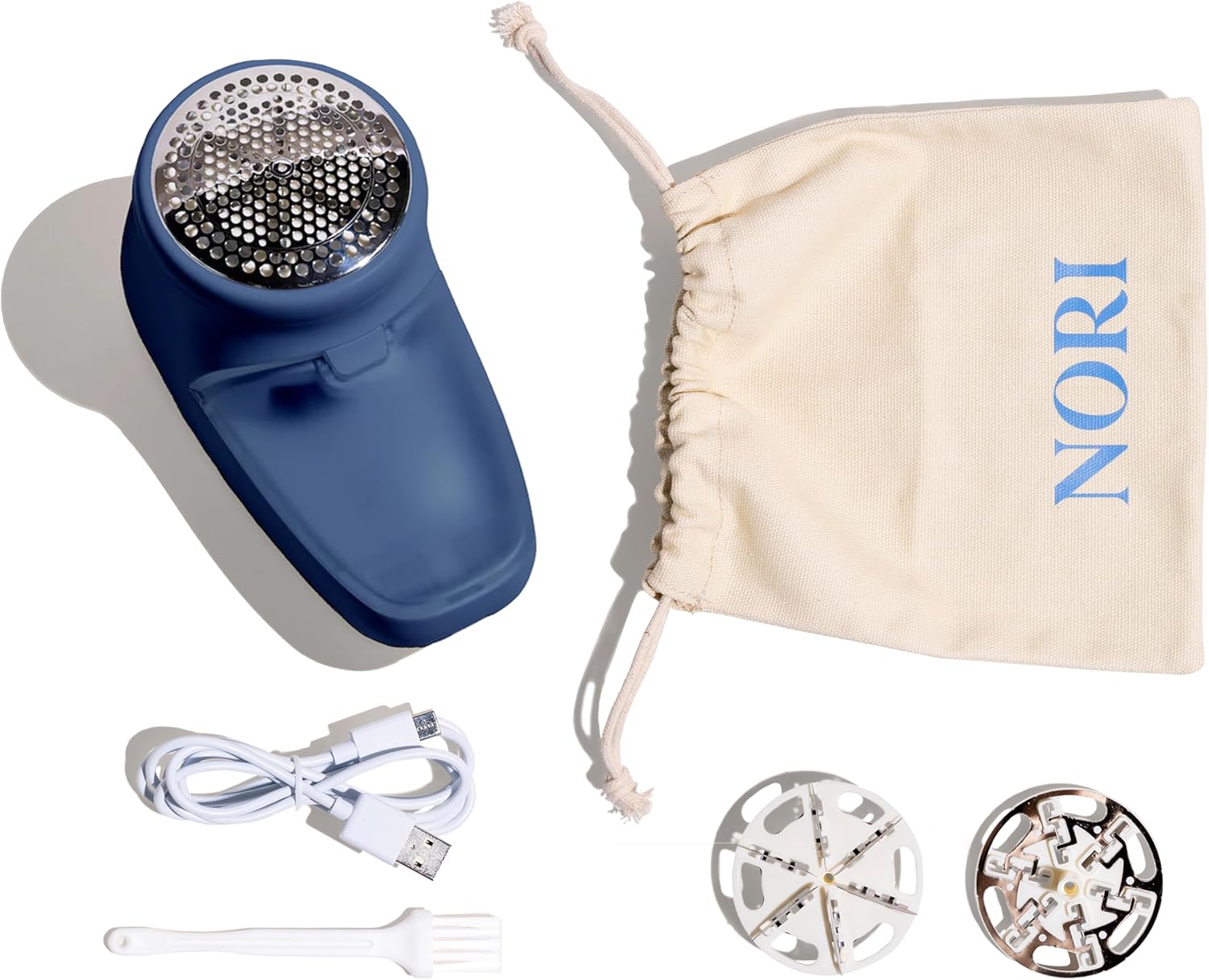 Nori Trim Fabric Shaver - Lint Remover for Clothes & Furniture Couch Pilling - Sweater Pill Remover - Clothes Shaver with 6 Precision Blades - Wireless and Rechargeable - Navy