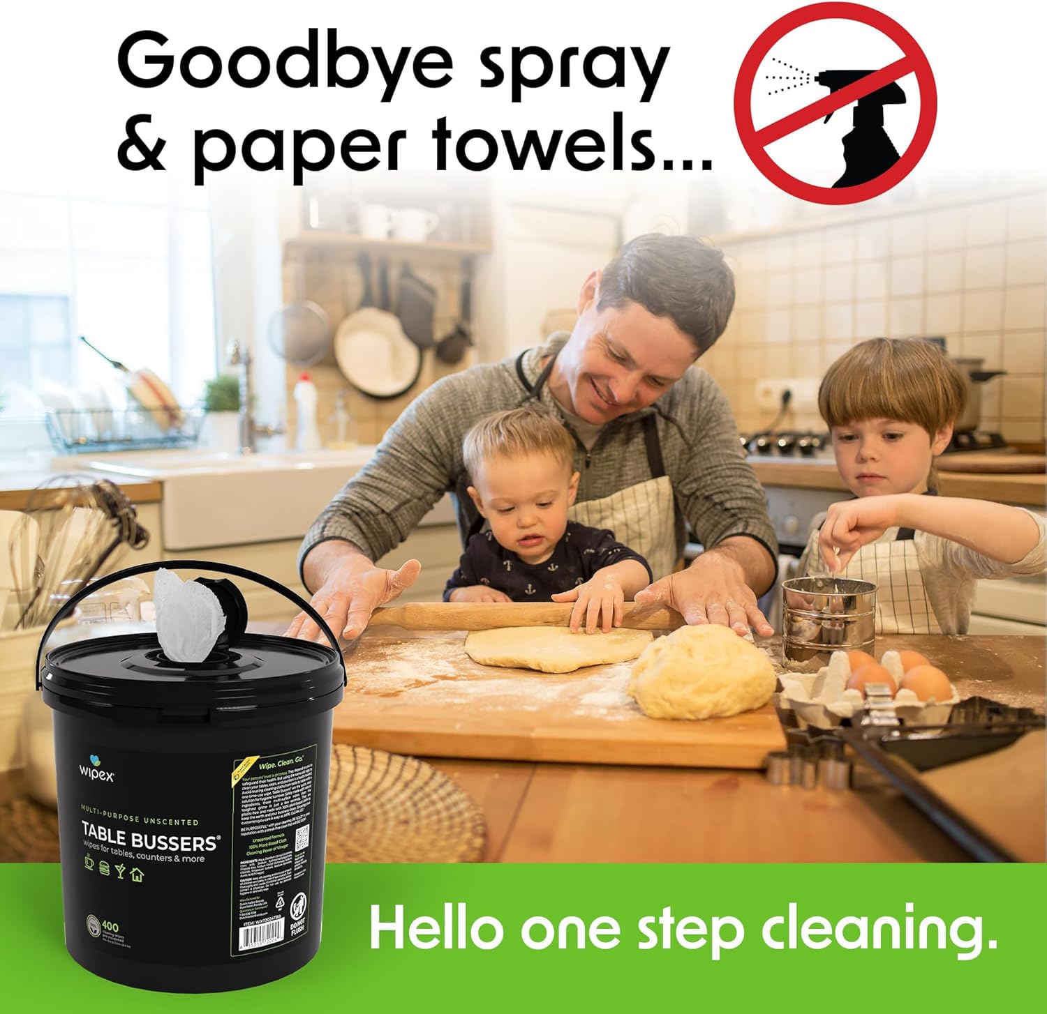 Wipex Table Bussers - Multi Surface Cleaner Natural Cleaning Wipes - Cleaning Vinegar Plant Based Wipe to Clean Restaurant Tables, Counters and Household Items, 400 Count (Pack of 1)