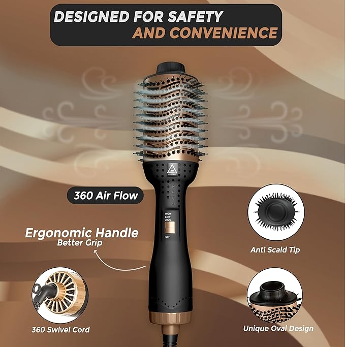 - [EFFORTLESSLY STYLE & VOLUMIZE]: Achieve salon-quality blowouts at home with the IYASA Oval Blow Dryer Brush, designed to smooth, volumize, and add shine. This one-step tool combines a hair dryer and styling brush for quick, frizz-free results on all hair types.