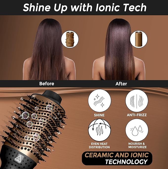 - [ADVANCED IONIC TECHNOLOGY]: Experience less frizz and more shine with our ionic technology, which reduces static and flyaways. The IYASA Blow Dryer Brush seals in moisture, leaving your hair silky-smooth and healthy-looking with every use.