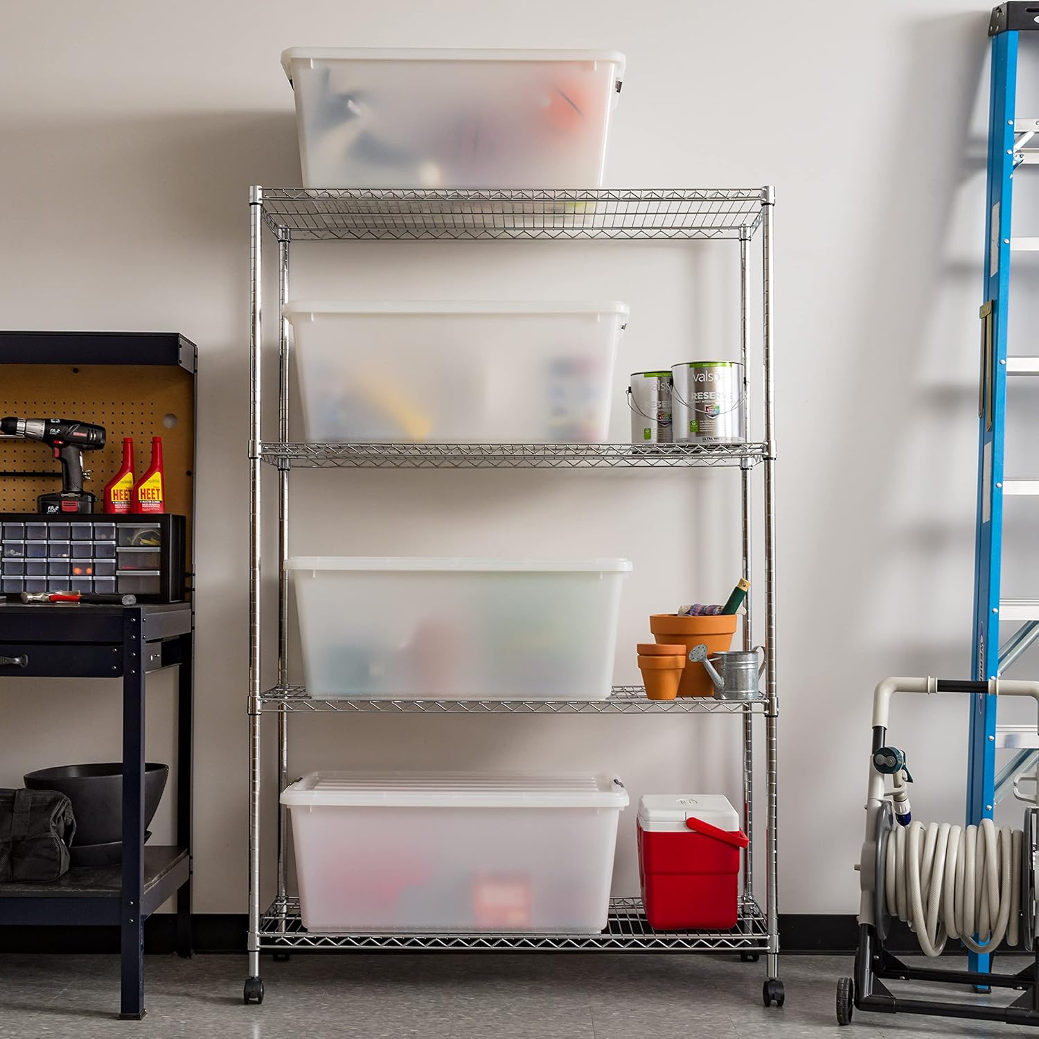 • STACKABLE STORAGE: Maximize space in your home, office, or garage. The securely latching lid keeps items safe and allows bins to be stacked on top of each other.