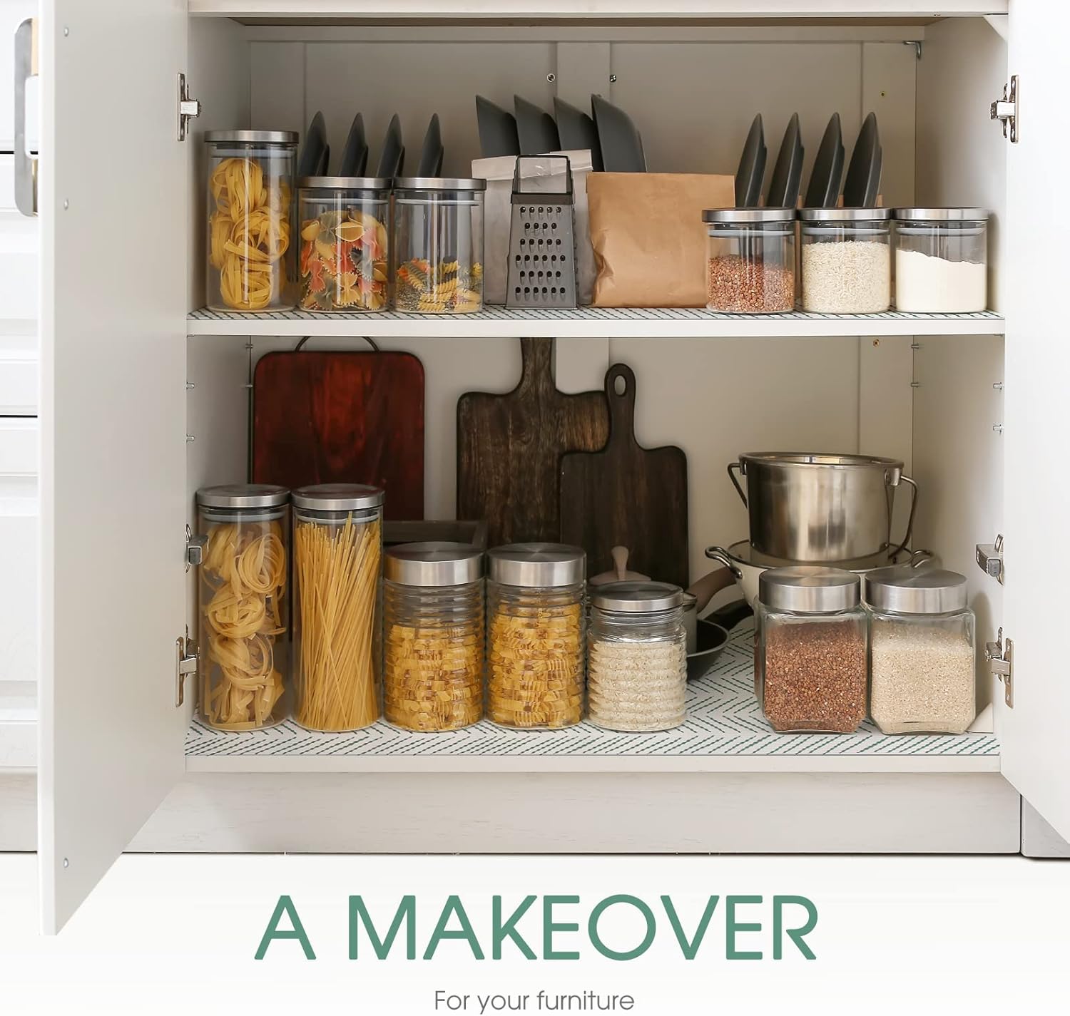 - Premium Cabinet Liner Made of Food-Grade EVA Material: This kitchen, drawer, cabinet, shelf, fridge and general storage shelf liner is made of BPA-free, odor-free, EVA material for your safety. The non-slip design sticker on the bottom of this drawer liners for kitchen allows your kitchen supplies to stay organized, in place and on the shelves, wire rack and pantry