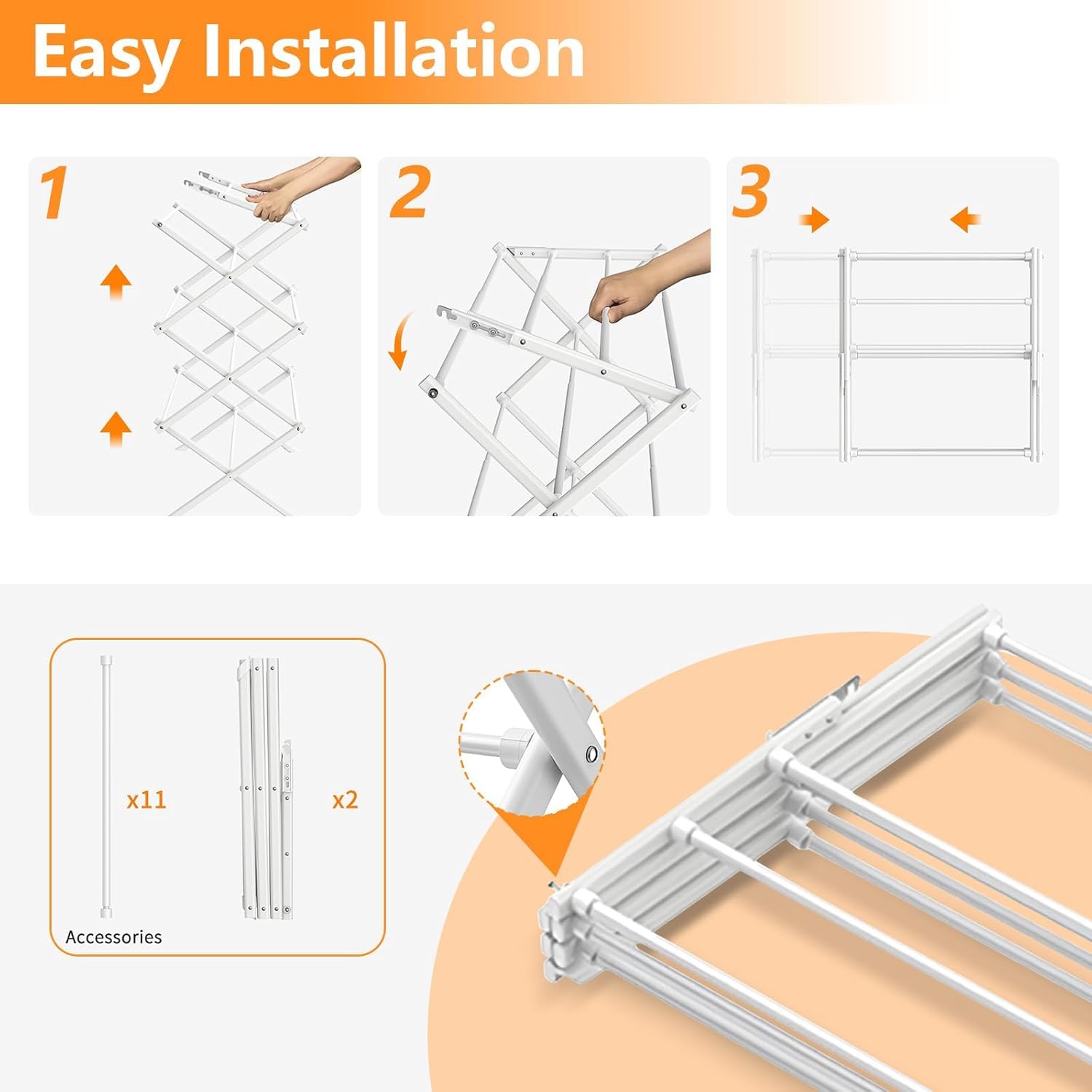 - ăEasy AssemblyăWith clear instructions, you can assemble this clothes drying rack in just 10 minutes, making it a convenient addition to your daily routine.