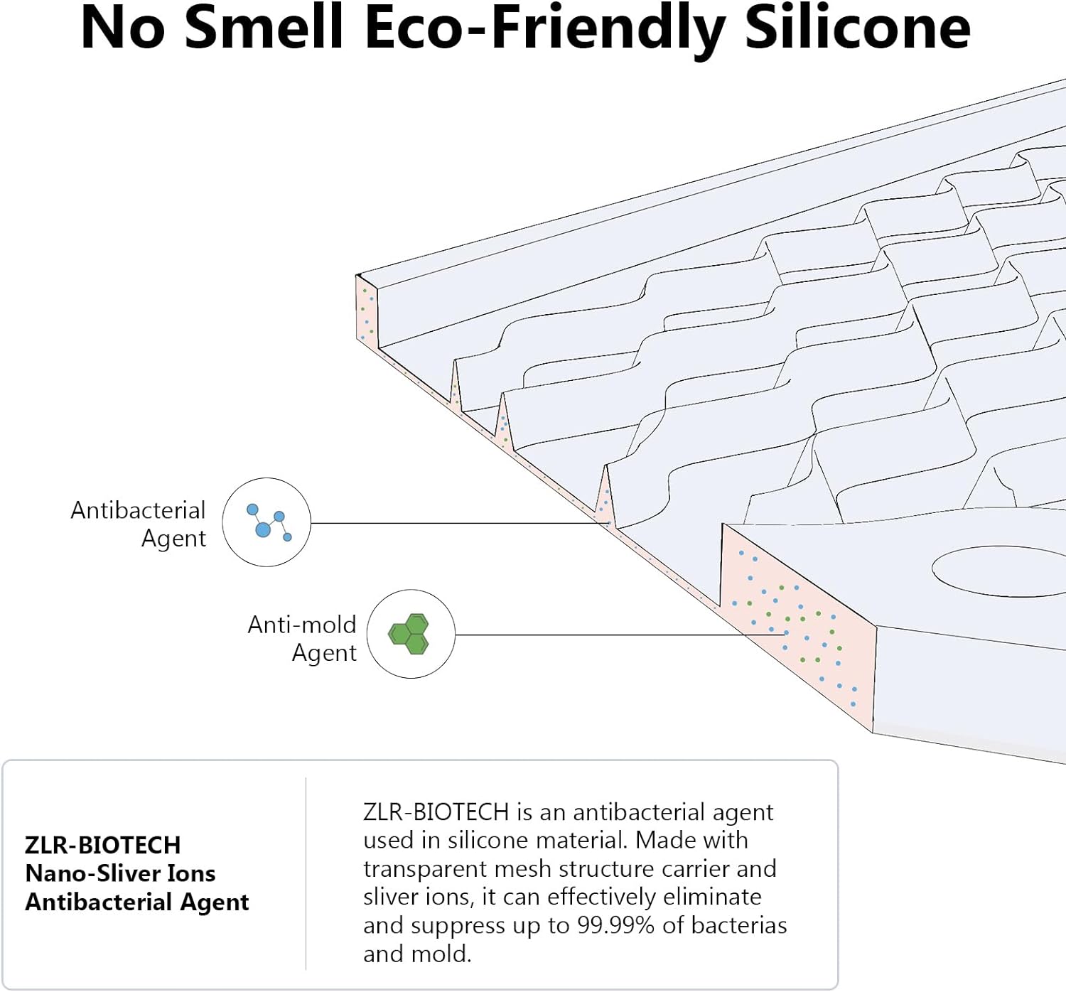 - ZLR-BIOTECH Silicone: Made from premium silicone with Nano-silver ions, ZLR dish drying mat keeps your kitchen counter cleaner and more hygienic.