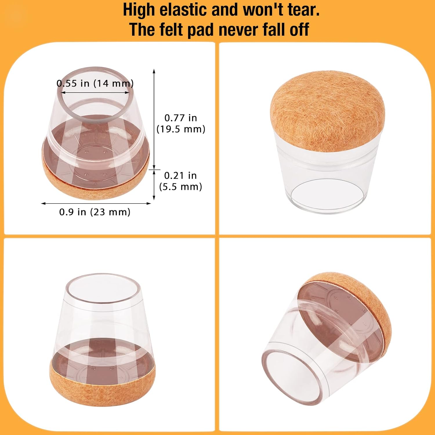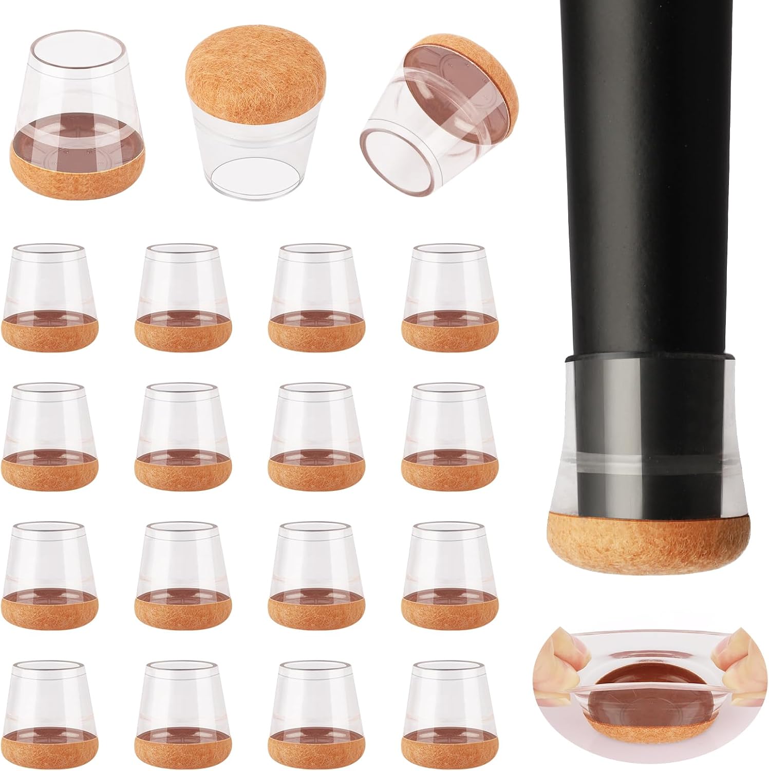 - 【Upgrade New Design】: 360° full felt pad bottom wrapped, which helps the felt bottom be able to touch the floor at any angle, preventing scratching the floor. Our chair leg floor protectors do not use gel. The bottom felt pad and the silicone chair leg floor protectors are integrated with a high-pressure machine to ensure that they will never fall off.