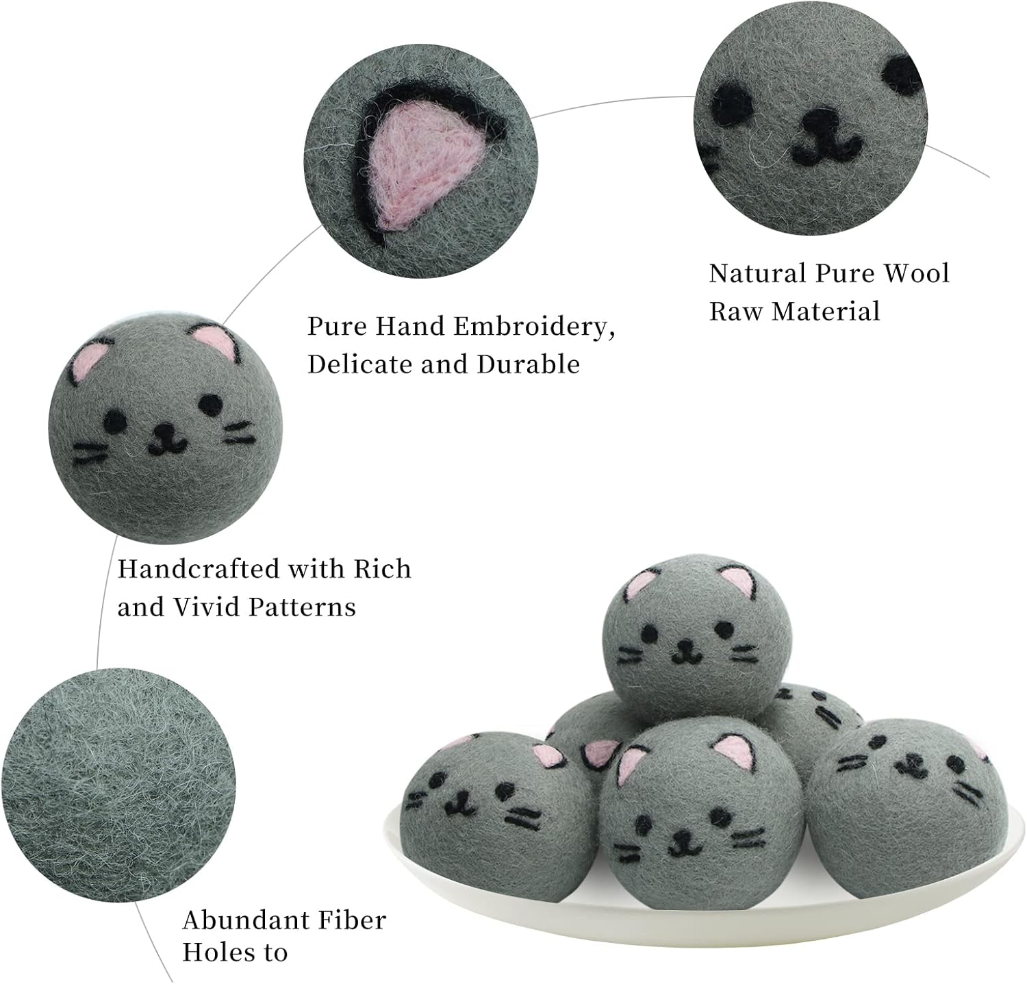 Dryer Balls Laundry Reusable - XL Wool Dryer Balls - Handmade Cute Cat Shape 6 Pack, Extra Large Dryer Balls, Shorten Drying Time, Organic Wool - Dry 1000+ Loads