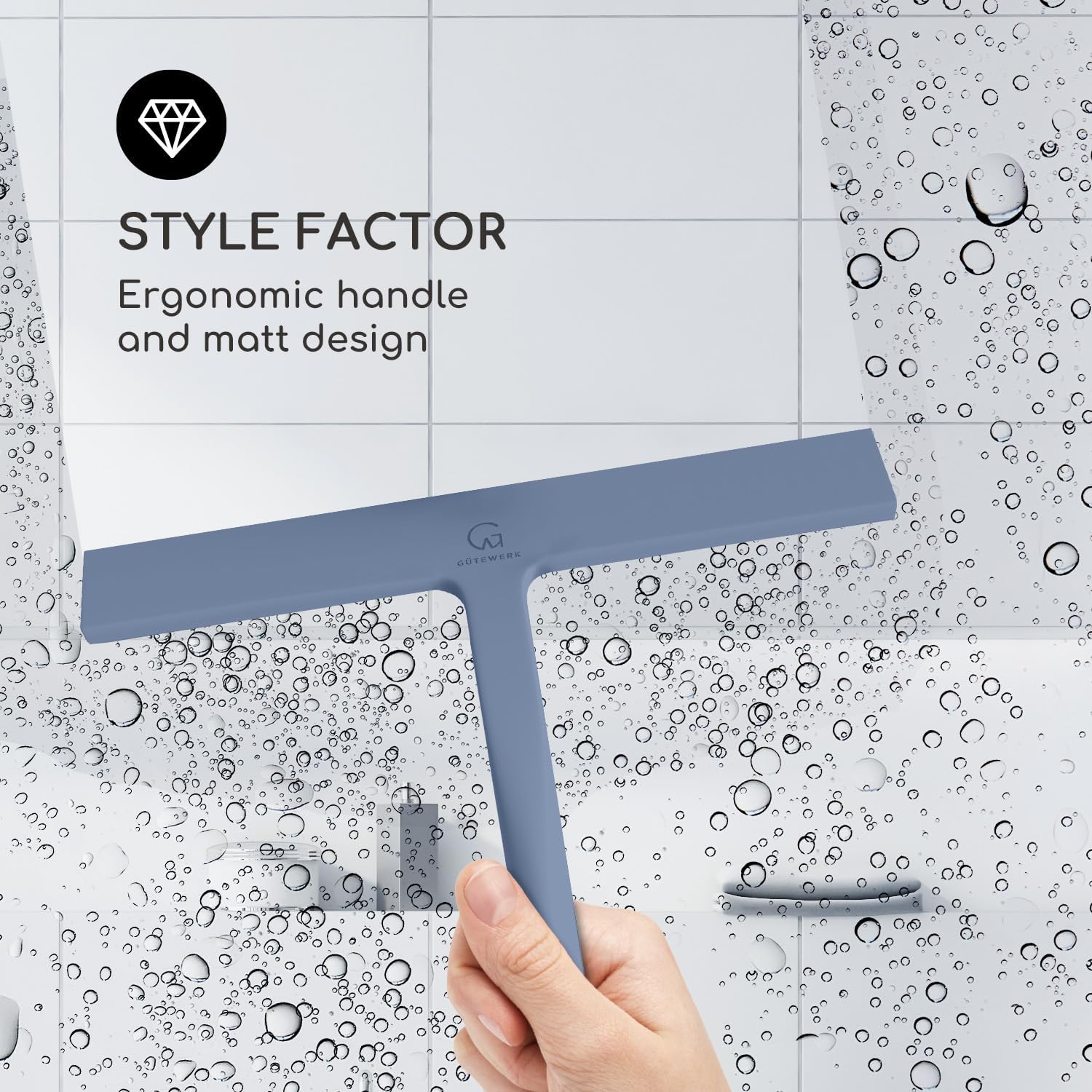 GÜTEWERK Shower Squeegee for Glass Doors, Silicone Window Squeegee, Bathroom and Glass Cleaning - Blue - 9 Inch
