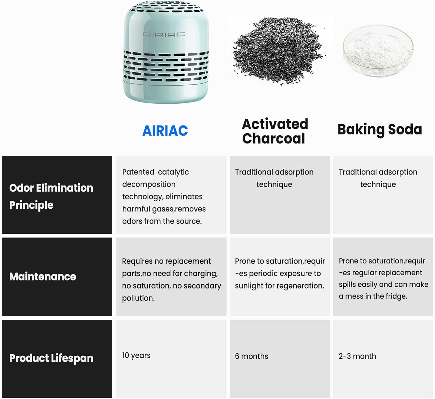- PORTABLE & VERSATILE KITCHEN GADGET: Our compact and lightweight refrigerator odor eliminator is designed for convenience at home or during travel. It works wonders in various smelly places such as fridges, cars, wardrobe drawers, shoe cabinets, gym bags, and more small spaces.
