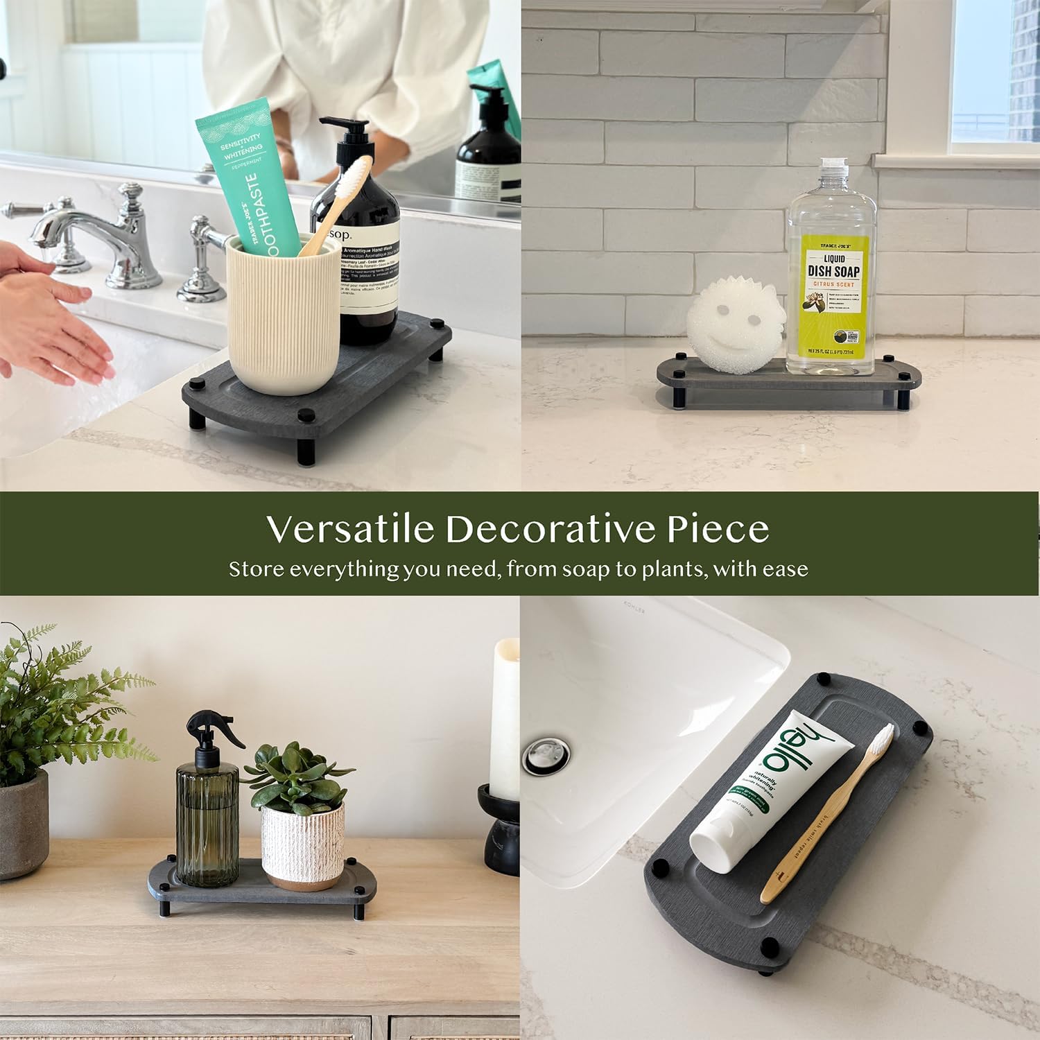 - VERSATILE DESIGN Ideal for holding soaps, sponges, and brushes, this caddy is perfect for both kitchen and bathroom use, keeping your essentials organized and within reach