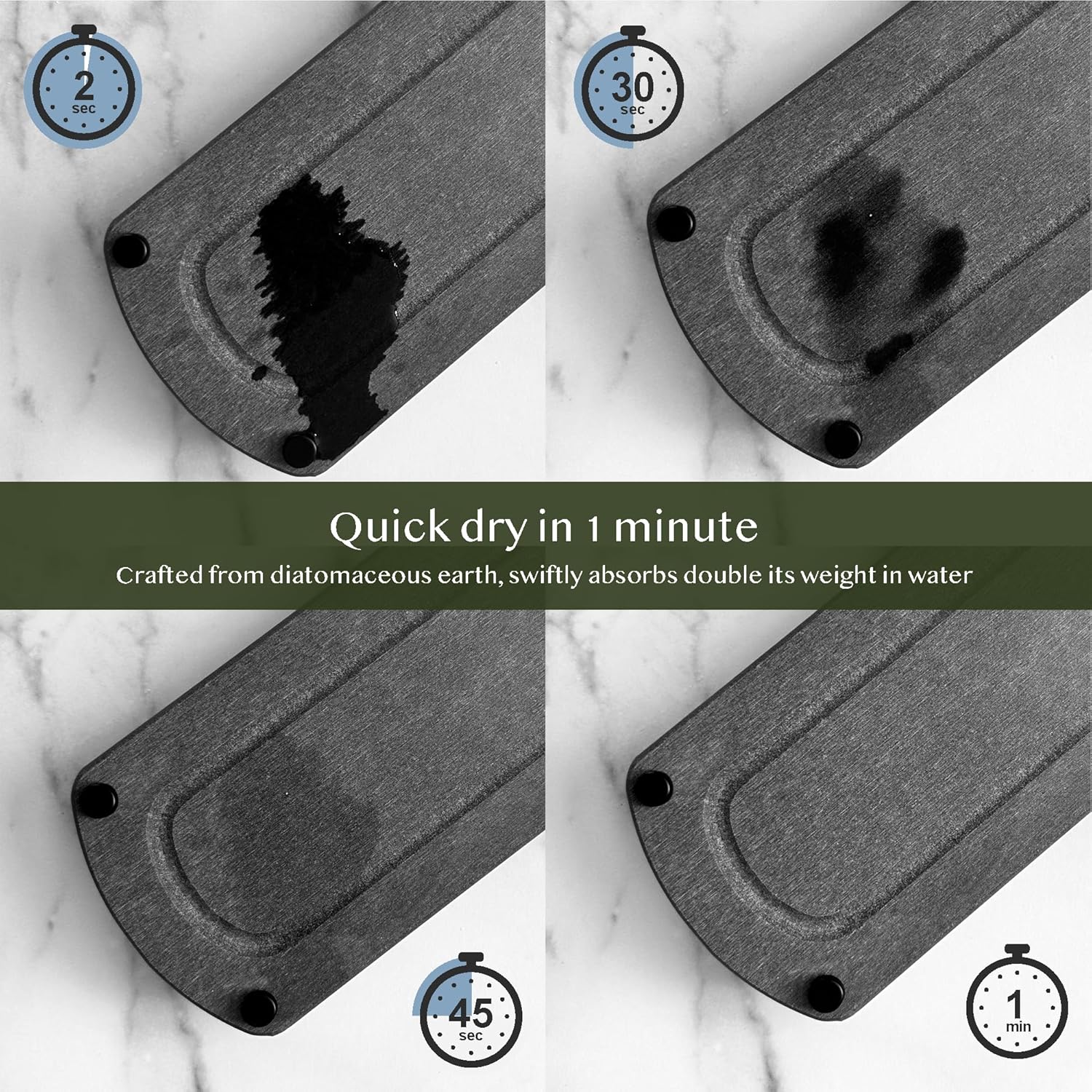 - RAPID DRYING TECHNOLOGRY Crafted from diatomaceous earth, this sink caddy absorbs moisture instantly, keeping your countertops dry and free from water stains