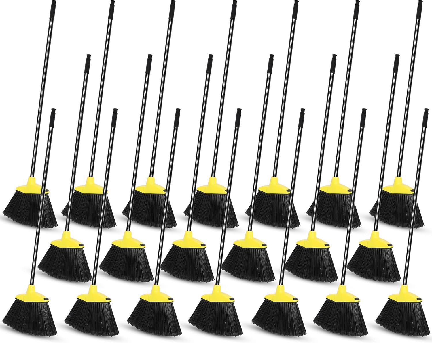 WILLBOND 20 Pcs Heavy Duty Broom Outdoor Indoor Commercial Angle Brooms Bulk for Courtyard Garage Lobby Mall Market Floor Home Kitchen Room Office Pet Hair Rubbish 54 Inch (Yellow)