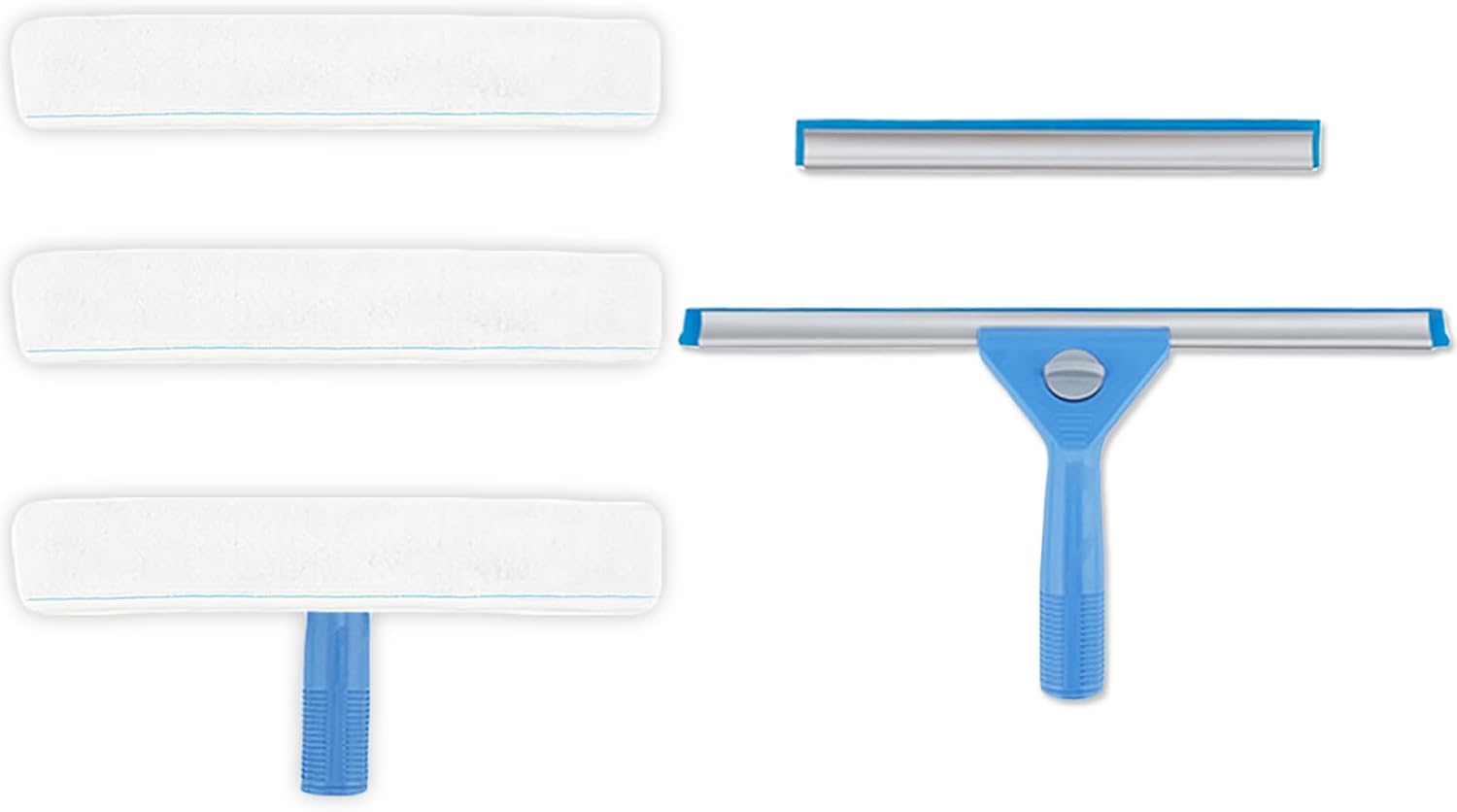 Window Squeegee Washing Kit for Shower Glass Door, Mirror and Window Cleaning, Extra 14'' Wide Squeegee and 2 Microfiber Scrubbers Included (Extension Pole not Included)
