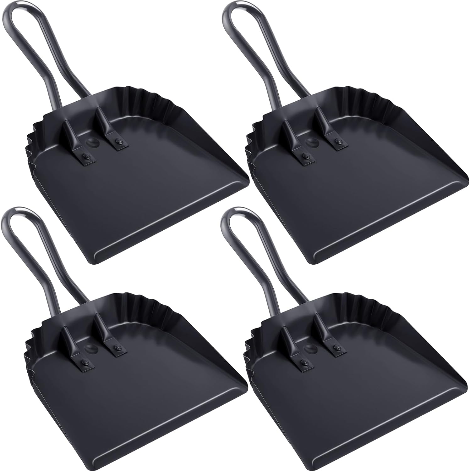 Mumufy 4 Pack 12 inch Heavy Duty Metal Dustpan Large Wide Dust Pans for Household Handheld Wide Scooper and Debris Cleaning Tool Ideal for Home and Commercial Use(Black)