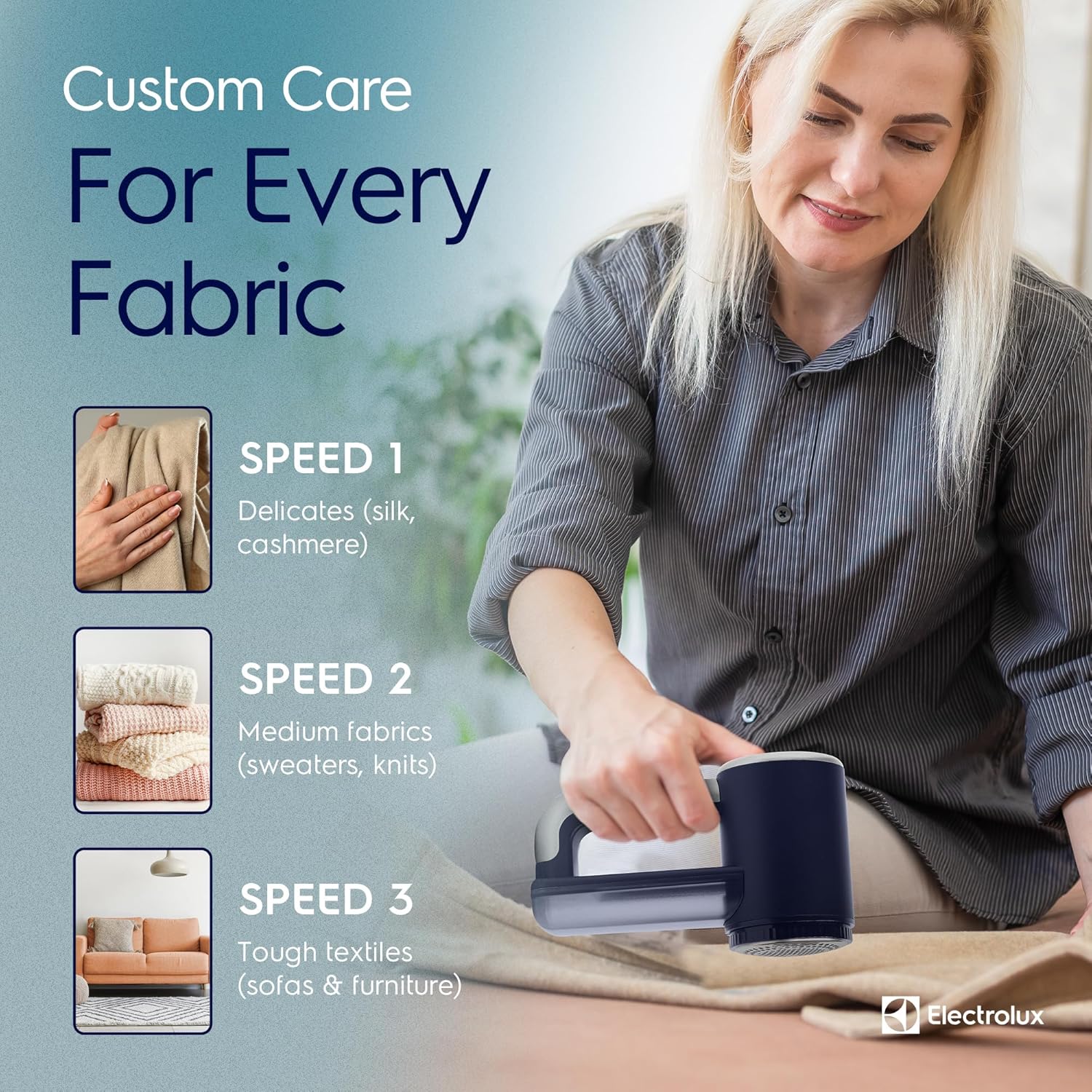 Electrolux Rechargeable Fabric Shaver | 3-Speed Lint Remover for Clothes & Furniture | Eliminates Fuzz & Pilling | Electric Lint Shaver with LED Display & Type-C Fast Charging Port - Blue